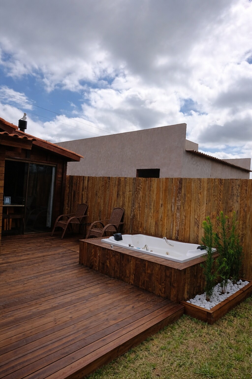 Chalet HN es la escapada perfecta en Passinhos - Osório. Ofrece comodidad y confort, con dos bañeras de hidromasaje (una interior y otra exterior), chimenea, salón con TV de 70 pulgadas y equipo de sonido, vistas a la naturaleza y cocina totalmente equipada. Ideal para parejas, ofrece privacidad y tranquilidad en medio de la vegetación. Disfruta de momentos de relax, noches estrelladas y experiencias inolvidables en un espacio diseñado para tu bienestar y ocio.