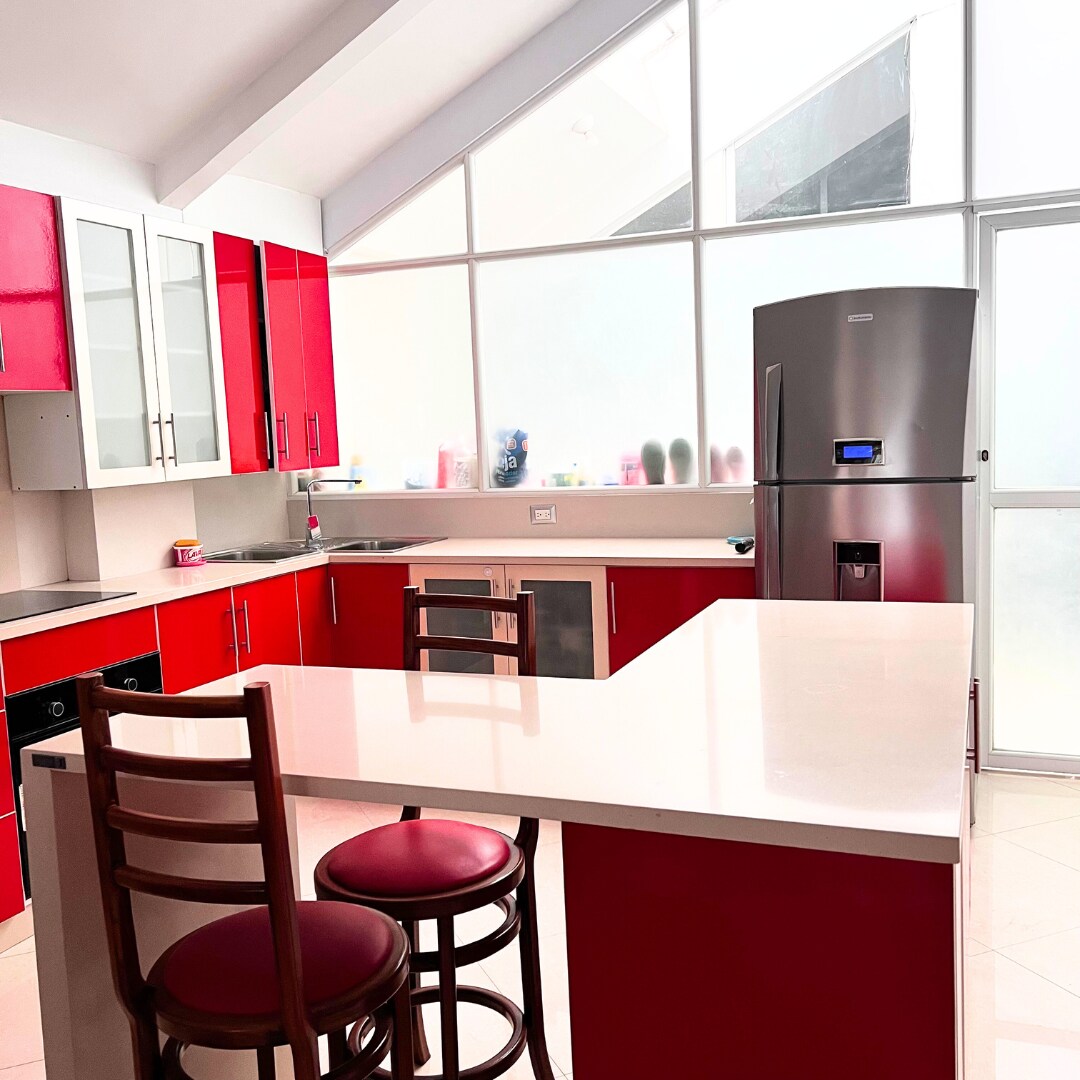 El Encanto es un hermoso departamento de 3 habitaciones donde puedes relajarte en un lugar espacioso, tranquilo, elegante y familiar. Cercano al centro comercial y lugares de diversión en la ciudad de Santo Domingo. Cómodo departamento de 3 habitaciones con baños completos para cada habitación. Adicional, medio baño social en la sala. Garage privado incluido hasta 3 vehiculos. WiFi incluído. Aire Acondicionado A 3 minutos del centro comercial Paseo Shopping A 5 minutos del centro de la ciudad