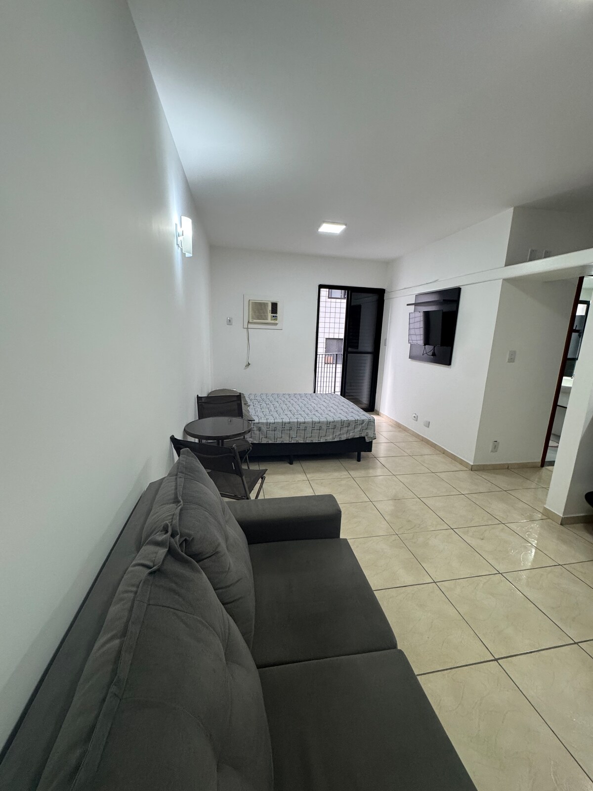 Apartamento mobiliado, apenas 230 metros da praia, menos de 3 minutos a pé. Roupa de cama, toalhas, ar condicionado, TV a cabo, wi-fi, cofre digital, secador de cabelo. Acomoda confortavelmente 4 pessoas, com uma cama de casal no quarto e um sofá cama na sala. Para maior conforto, o Flat conta com recepção 24 horas facilitando o check-in ou check-out, excelente café da manhã (pago a parte), piscina, academia e limpeza diária, exceto domingos e feriados.