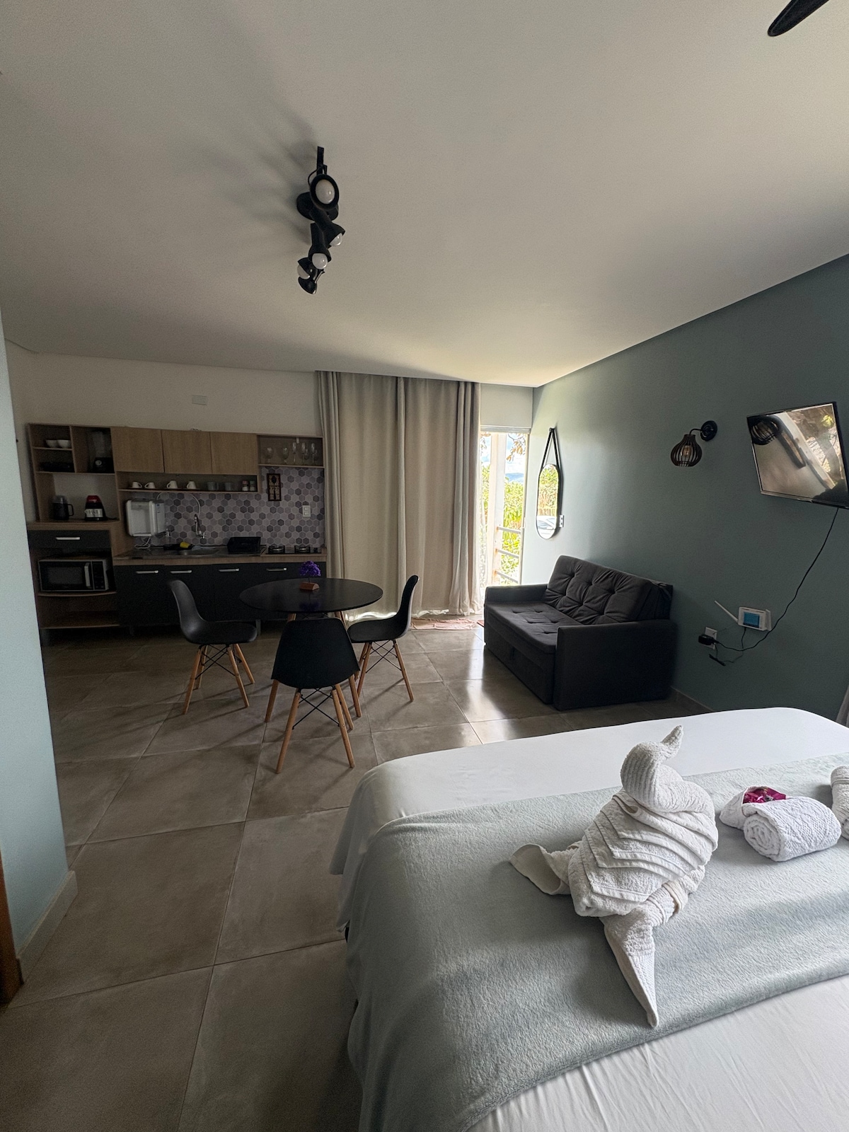 Parte de la romántica Villa Pouso Alto, la Gruta tiene un espacio muy grande (100 m2 de área interna + balcón) y cómodo para una pareja con una vista única de las montañas. Su arquitectura mezcla lo rústico de la chapada con sofisticación y modernidad, lo que hace que la estancia sea muy agradable y con gran comodidad. Cuenta con hidroeléctrica, cubierta cubierta, aire acondicionado, TV de 65", torre de sonido, piscina climatizada compartida con vistas encantadoras. * DESAYUNO OPCIONAL pagado por separado. PROGRAMA en la reserva