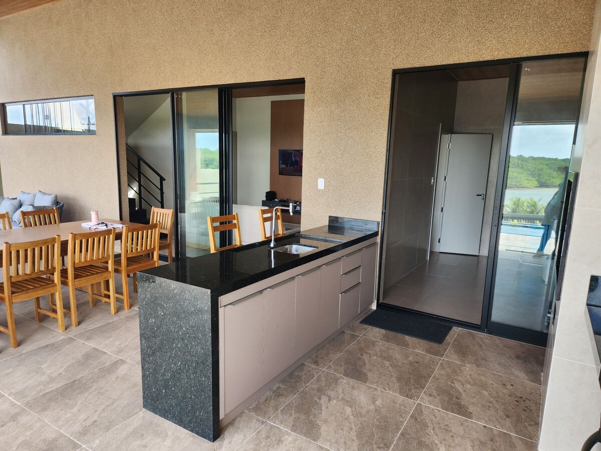 Una casa moderna, nueva y súper cómoda para que tú y tu familia disfrutéis de los mejores momentos. Comunidad cerrada con seguridad las 24 horas en Salinas. Casa con 4 baños en suite (+ 1 baño externo), piscina, patio trasero grande, barbacoa, cocina completa, mesa de ping-pong, mesa de billar, internet, TV y sistema de sonido. Condominio con campo de fútbol, pista de tenis, grupo de juegos, voleibol y tenis de playa. Rodeado de naturaleza y tranquilidad, todo a solo 5 minutos de la playa de Atalaia.