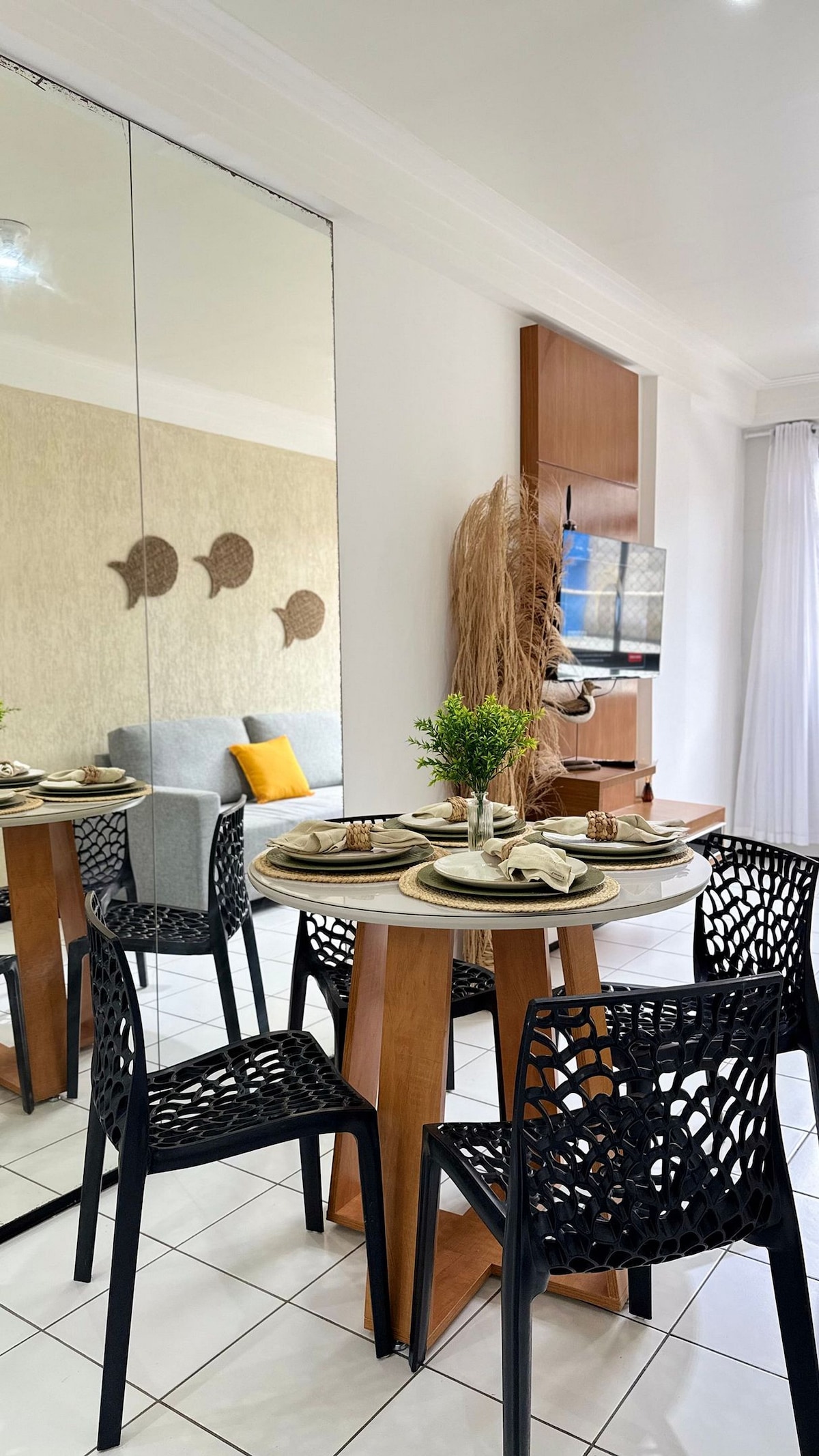 Lagoa Serena – a 200 m de la playa de São Marcos Acogedor apartamento en el Beach Garden Condominium (Apt 107), a solo 200 m de la playa de São Marcos, en la Avenida Litorânea. 📍 Ubicación privilegiada en São Luís: • A 7 km del centro histórico de São Luís • A 16 km del aeropuerto Cuenta con: • 1 dormitorio con cama «queen size» y cama de matrimonio. • Sala con sofá cama y TV • Comedor planificado • Cocina completa. • Aseo con ducha eléctrica Ideal para aquellos que buscan descanso y comodidad cerca del mar.