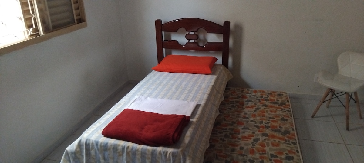Relájese con toda la familia en este alojamiento tranquilo. Granja para descansar y disfrutar. No alquilamos para fiestas con DJ o cargo en la portería. La granja tiene 2 dormitorios; un baño interno; un baño externo; piscina; ducha; barbacoa; congelador y nevera dúplex; cocina de 4 hornillas y encimera. Una habitación tiene 1 cama doble con armario, y la otra 2 camas individuales y 5 colchones dobles. Situado en Estancia Araras, a 6 km de la ciudad de São Sebastião do Paraíso - MG.
