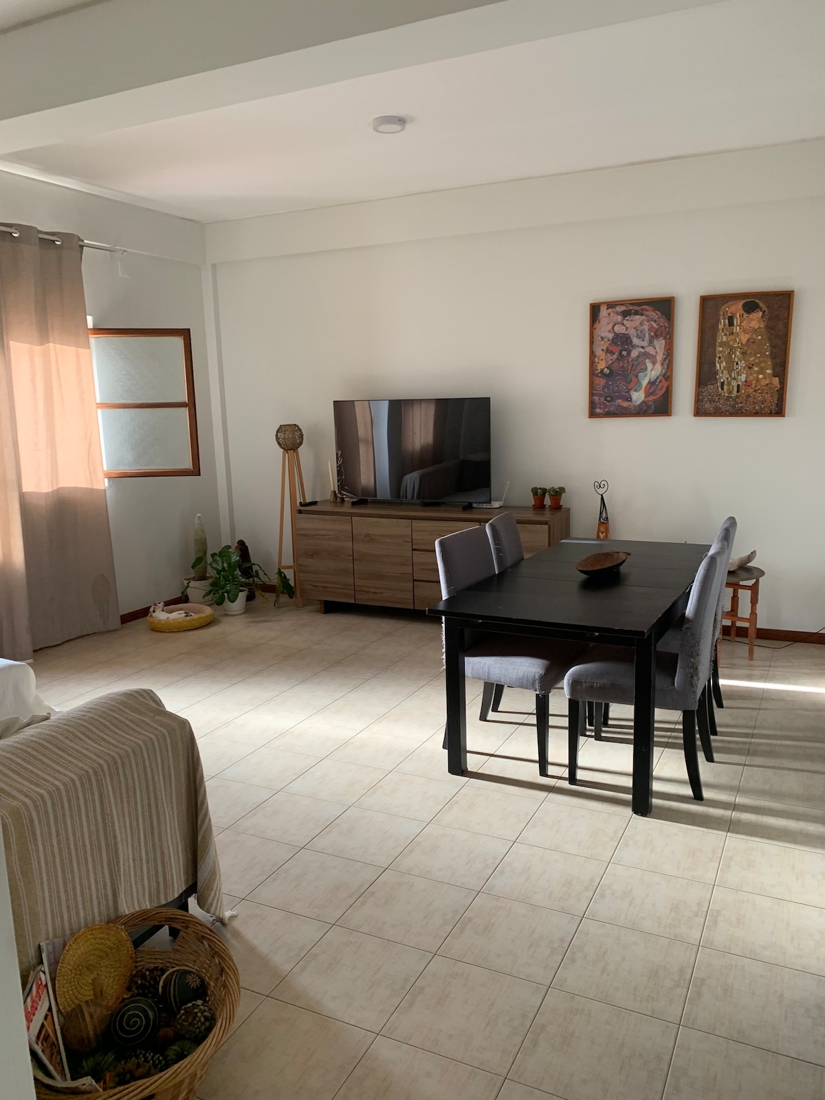 Piso elegantemente decorado en Mindelo. Ubicado en la segunda planta de un edificio en la zona de Alto de Santo António, solo a pocos minutos a pie del centro de la ciudad. Disfruta de los magníficos paisajes del centro de la ciudad, del puerto, de Porto Grande, de Praia de Laginha y de Santo Antão. El piso está totalmente amueblado y tiene un lujoso espacio de 80m2, cocina totalmente equipada, amplio comedor, terraza privada, sofá y una habitación con una cómoda cama de 160x200cm.