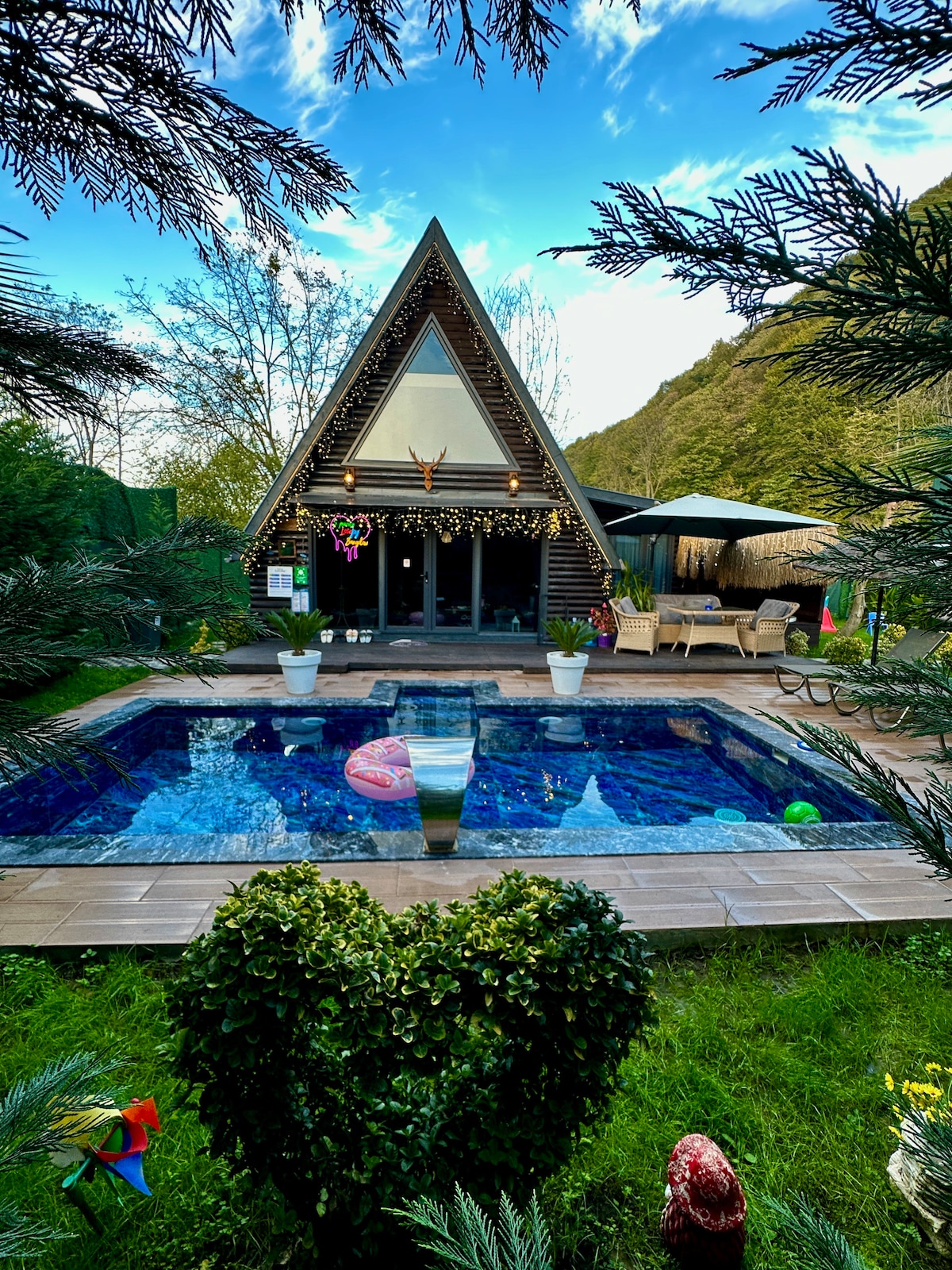 Bu huzurlu konaklama yerinde ailece dinlenebilirsiniz doğanın içinde muhteşem bir yer ,. ısıtmalı sıcak havuzlu
