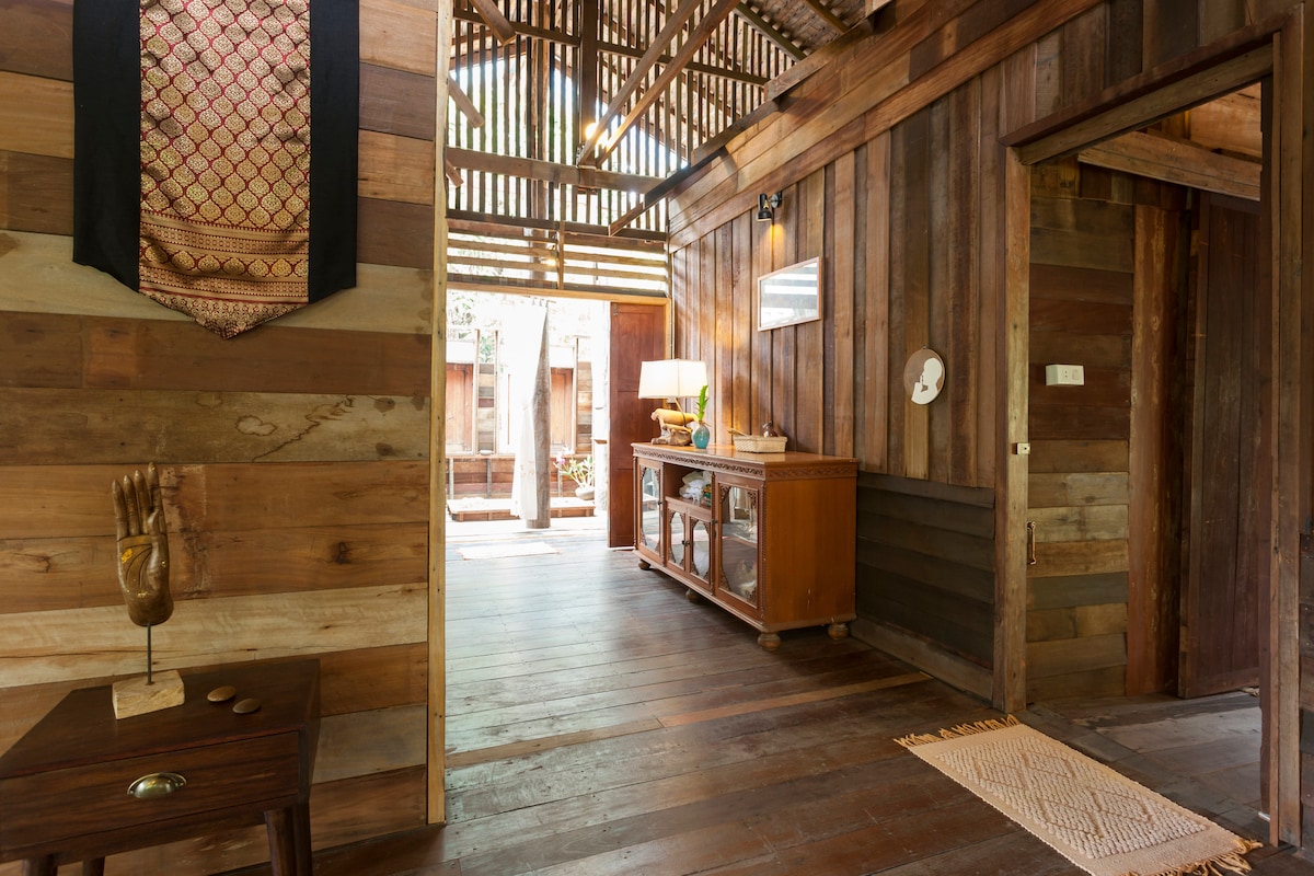 Ubicada justo debajo de la Puerta de Chiang Mai se encuentra nuestra hermosa casa de madera. Es tranquilo y está rodeado de jardines. Los 3 dormitorios están equipados con aire acondicionado y ventiladores. Es un paraíso para aquellos que quieran escapar de la ajetreada vida de la ciudad y explorar lo mejor de Chiang Mai. Tenemos servicio de recogida gratuito desde el aeropuerto/estación de autobuses/tren. El desayuno de estilo Chiangmai/tailandés-occidental también es gratuito todos los días en la casa :)