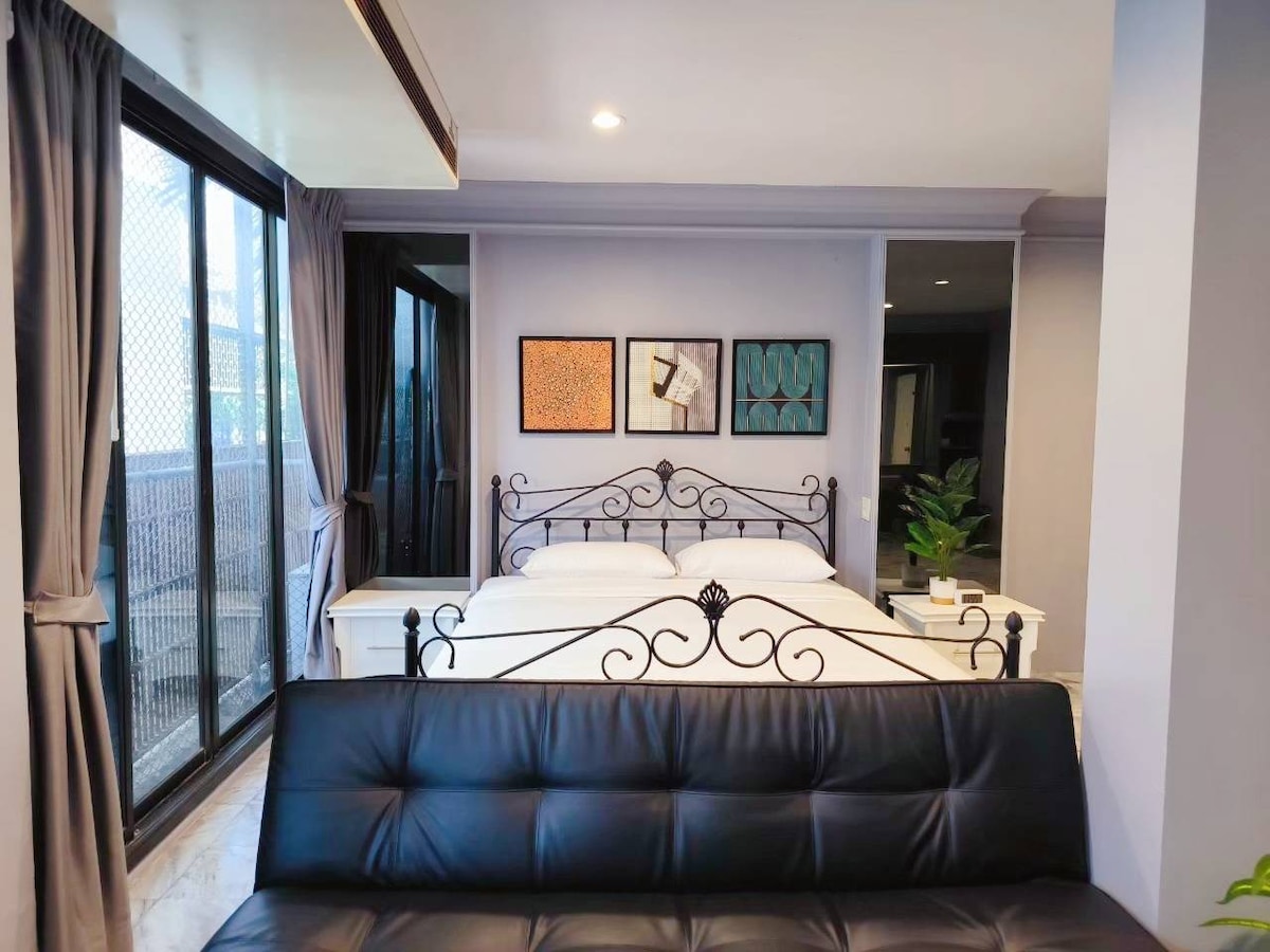 La habitación tipo loft. Es apto para 2 hasta 3 personas con cama supletoria. Puedes disfrutar de toda la habitación. Esta habitación está en el segundo piso del edificio en Rama4, Pathumwan, que es de fácil acceso a la carretera Banthat Thong (mucha comida callejera) en unos minutos a pie. Siam Square, MBK y China Town también están a poca distancia a pie. Dusit Central Park y Lumpini Park están a solo 2 paradas en MRT. También puedes disfrutar de un ambiente relajante en Centenary Park, a un paseo muy corto.