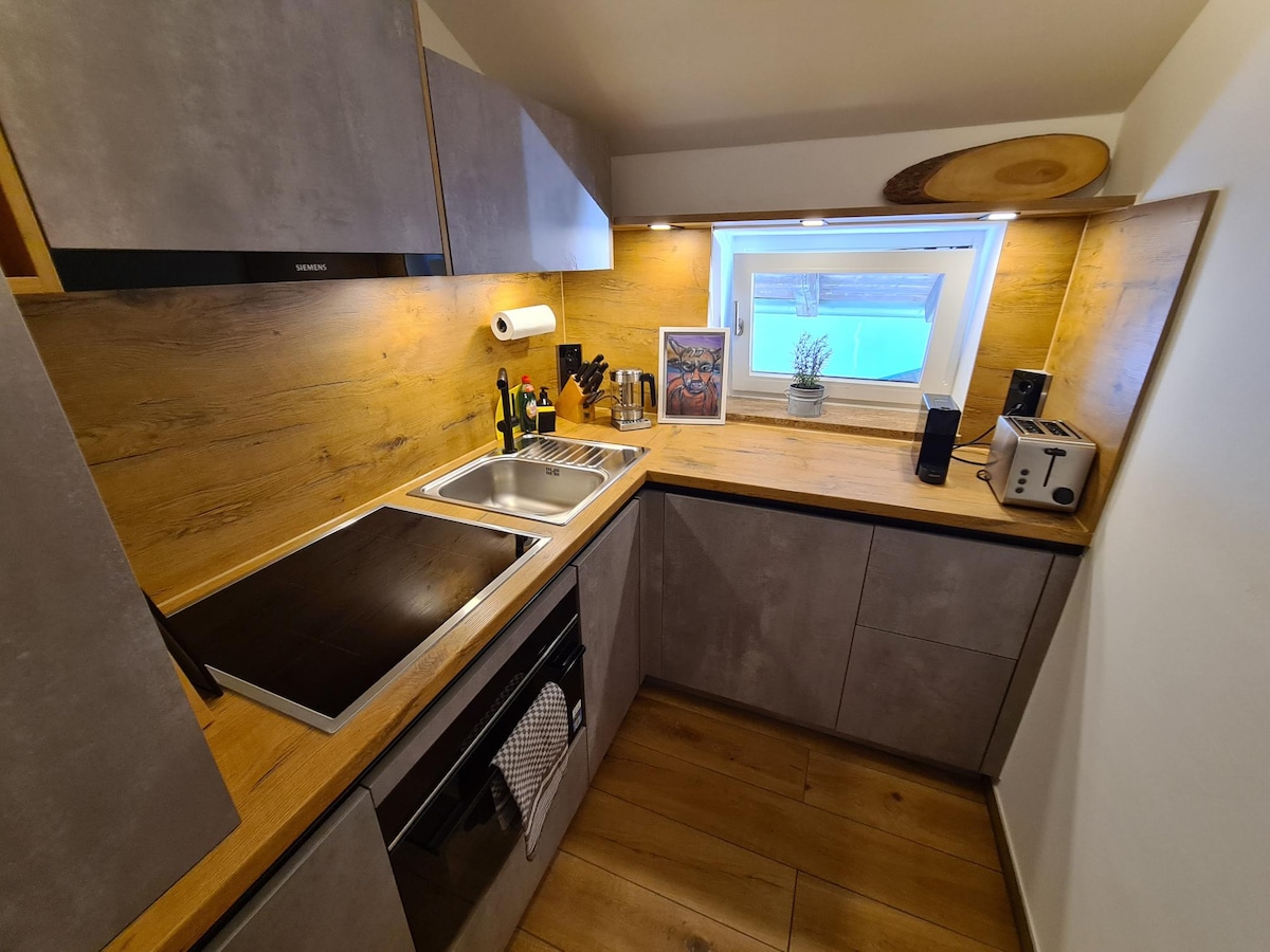 Moderno apartamento de vacaciones junto al río Lech. El apartamento consta de una cocina moderna, dormitorio (cama doble), un baño con ducha y WC, y una zona de entrada con guardarropa. El apartamento está situado en el patio/jardín o en el Lech y ocupa todo el primer Desde el Lech se puede disfrutar de una romántica vista del antiguo monasterio de St. Mang y del castillo de Füssen. Ir de compras, pasear, salir a comer... todo esto sin necesidad de utilizar ningún medio de transporte.