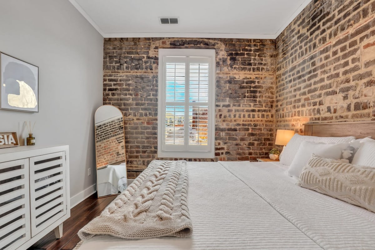 Historic 1860s Loft • Exposed Brick + Beams • Prime Congress Street Location! • Right in the thick of downtown life: step out into the gorgeous city! • 2 King Beds • Sectional sofa with pull-out sleeping option • Beautifully restored hardwood floors • Ultra-high ceilings with exposed beams • Washer & dryer (free to use during your stay) • 65” Smart TV in living room + Roku TVs in bedrooms This is a licensed short-term rental in the City of Savannah, GA. Permit #SVR-03218 License SVR-03218.