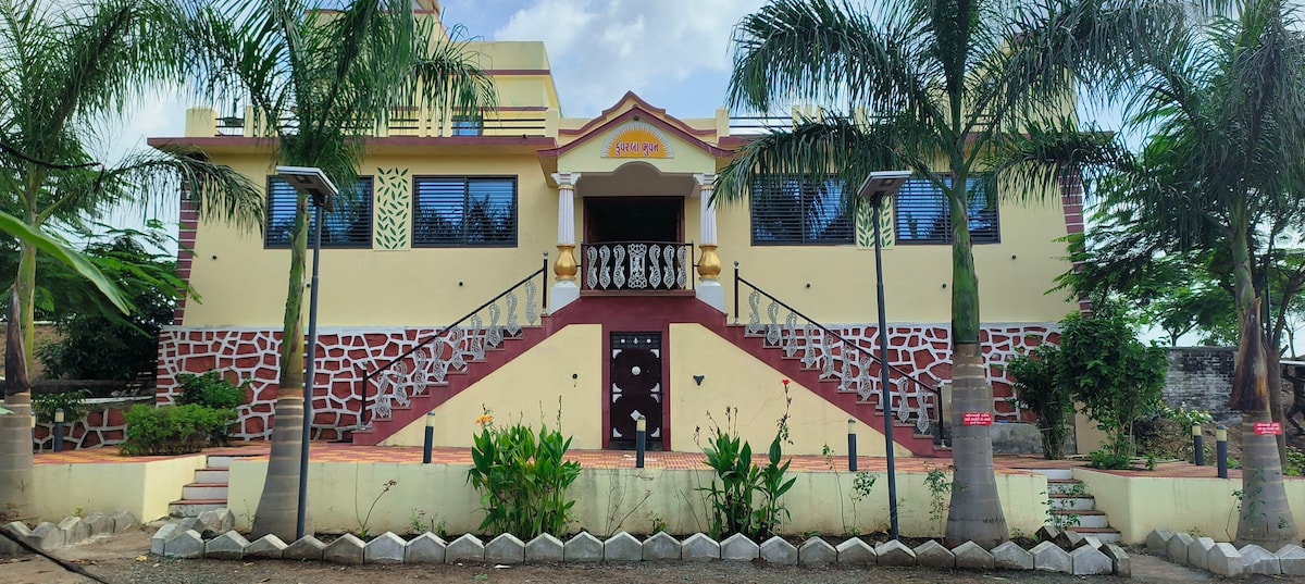 Discover serenity at our charming 2-bedroom farmhouse near Gir Lion Sanctuary. Nestled amidst nature, this vibrant yellow haven offers comfortable living spaces and panoramic views. Explore our fruit orchard with mango, coconut & chikoo trees. Spot diverse wildlife, including majestic lions and deer. Enjoy the spacious terrace for stargazing or morning yoga. With ample parking and easy sanctuary access, it's perfect for nature lovers. Experience the wild beauty of Gujarat in comfort and style.