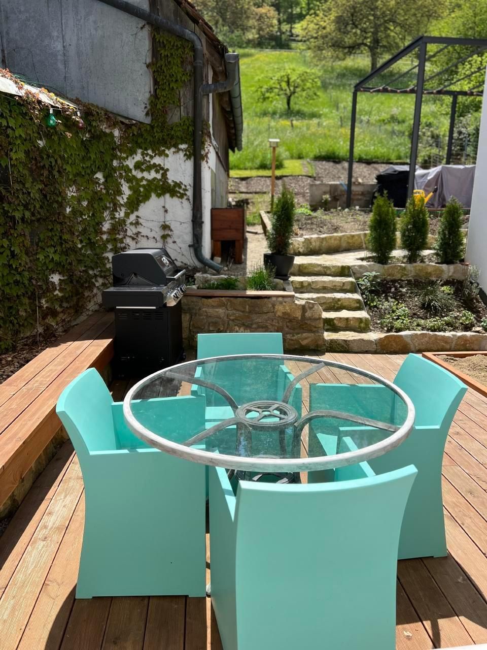 El apartamento está situado en la planta baja de una casa de dos familias, en las afueras del pueblo, rodeado de campos, bosques y prados. El apartamento incluye un asiento privado con capacidad para 4 personas. El gran jardín que lo rodea, así como la barbacoa, son de uso compartido. En el jardín hay un «hotpot» que también se puede utilizar con cita previa y por un suplemento.