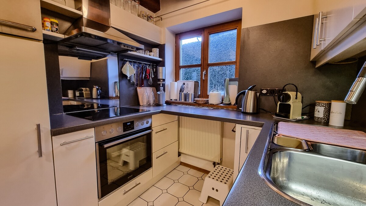 Este apartamento completamente renovado se encuentra en excelentes condiciones y se extiende por el entresuelo de una casa de campo construida en la década de 1930, que ha sido restaurada con gran atención al detalle. Todo el apartamento, con su ambiente individual, está a su entera disposición. ¡Aquí se puede respirar tranquilamente! La casa de campo se encuentra casi en una ubicación aislada (un vecino directo), rodeada de prados y bosques en el hermoso Ostallgäu.
