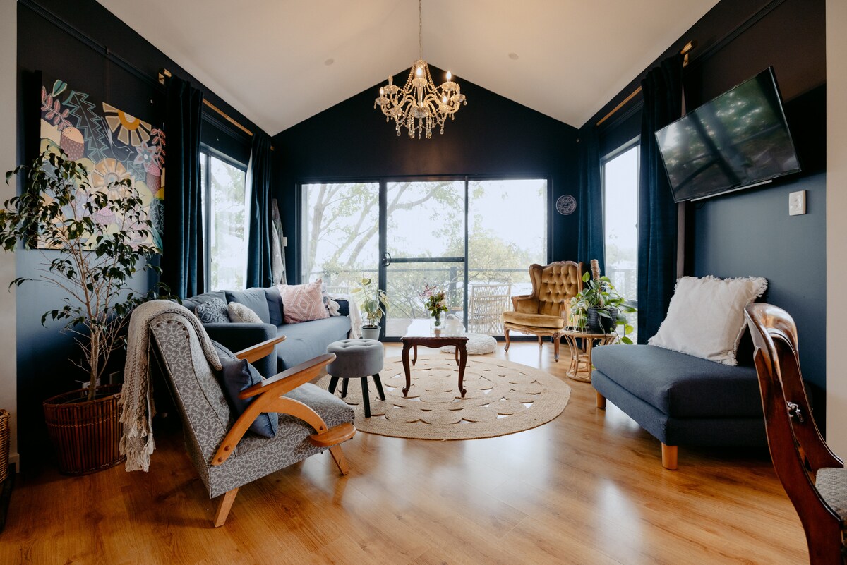 Disfruta de la tranquilidad de este chalet octogonal de diseño único, situado en lo alto de Weedon Hill en un entorno natural de matorral australiano. Vistas a la ensenada, sonidos del océano, amaneceres, abundante avifauna y vistas al monte nativo desde cada ventana son solo algunas de las maravillas que experimentarás. Con grandes ventanales, tu experiencia al aire libre se intensifica en esta acogedora cabaña de madera con chimenea de leña para mayor calidez y comodidad. A solo 3 km del centro de la ciudad, sin embargo, parece que estás a kilómetros de distancia.