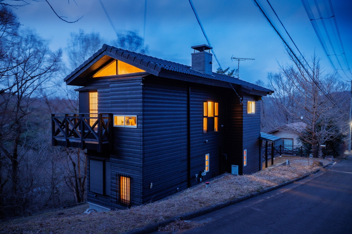 Esto es una casa de campo nueva construida en 2022. Al entrar en la elegante casa con paredes exteriores negras, el pasillo de piedra que conduce al salón de techo alto te hará olvidar tu vida cotidiana. El baño al aire libre está rodeado de árboles y, en invierno, podrás disfrutar de un relajante baño con vistas a la nieve. Disfruta de un teatro privado en el salón y en el dormitorio con una pantalla de proyector de 100 pulgadas. Las pantallas y los escritorios también están disponibles para tu espacio de trabajo.