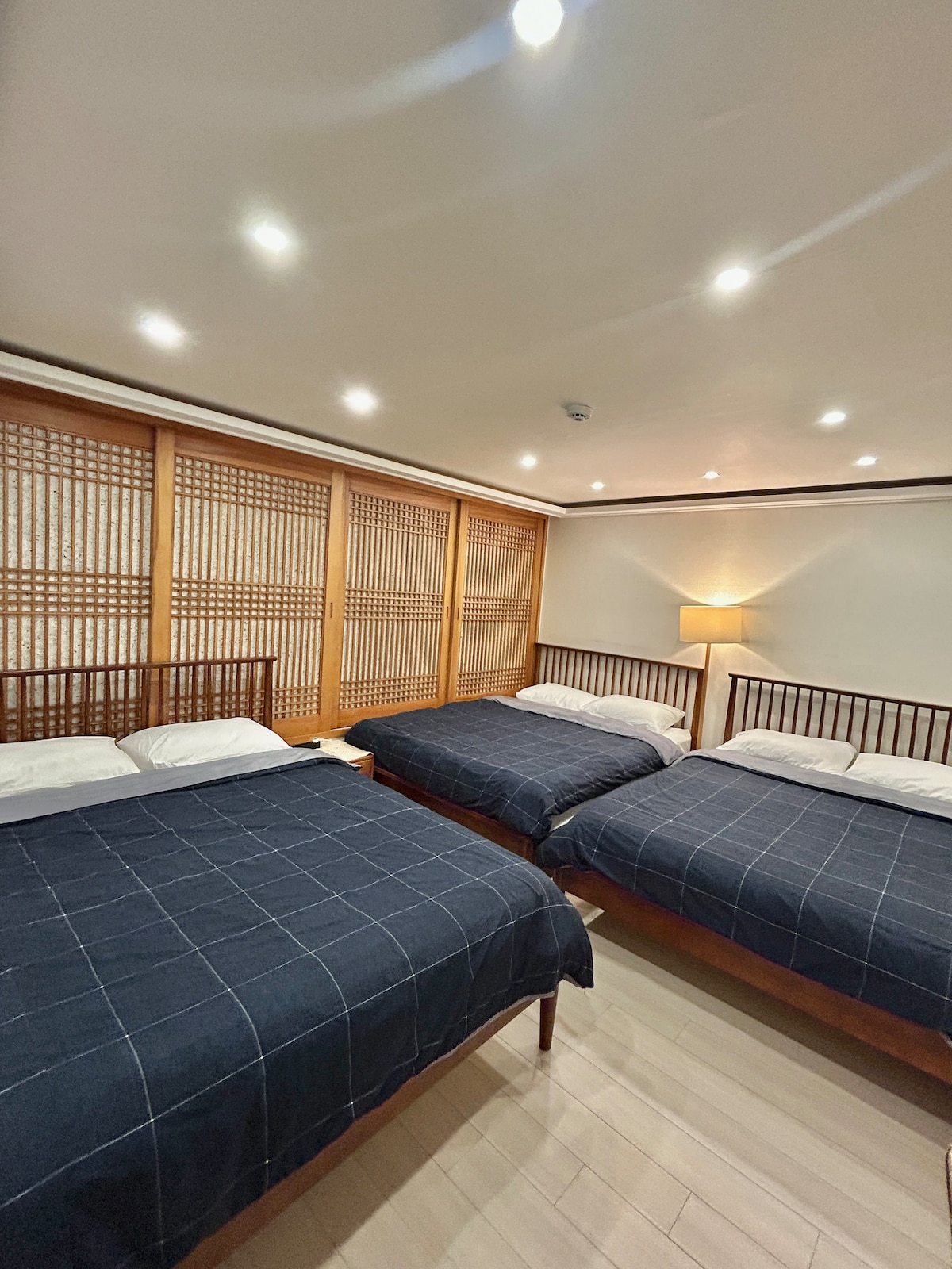 #단체룸#가족룸#퀸침대3개#대형빔프로젝터 #구남로메인#화장실1개#샤워실1개#무료짐보관가능
