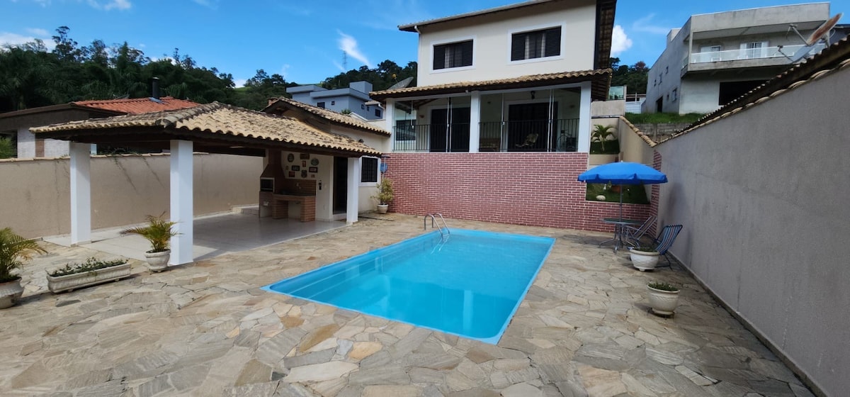 Una hermosa casa para que la conozcas en Serra Negra y estar más cerca de la naturaleza con comodidad. Un amplio espacio para niños y mascotas. La casa tiene muros altos con puerta electrónica que da más seguridad y comodidad a las personas que alquilan. La casa tiene chimenea para el frío y piscina climatizada para los días calurosos, tiene Wi-Fi para que esté conectado al mundo de Internet. La casa está a 5 minutos del centro de la ciudad en coche.