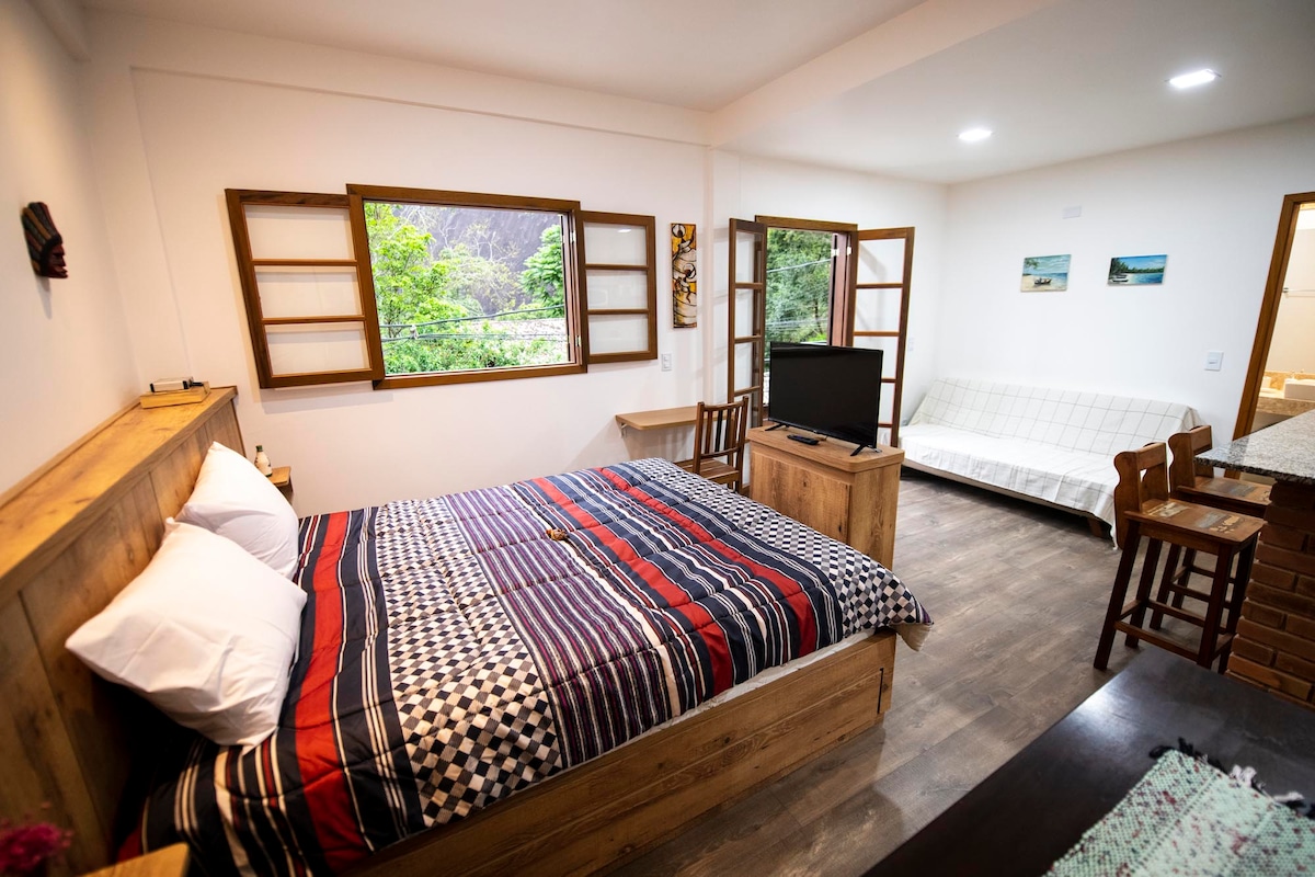 Bienvenido a nuestro contemporáneo y acogedor Stúdio, perfectamente ubicado en el corazón de Petrópolis, a pocos pasos del nuevo centro comercial de la ciudad y de la famosa Rua Teresa. Este estudio ha sido cuidadosamente remodelado para su comodidad y bienestar, creando un encantador refugio de aproximadamente 23 m² con impresionantes vistas del centro de la ciudad.