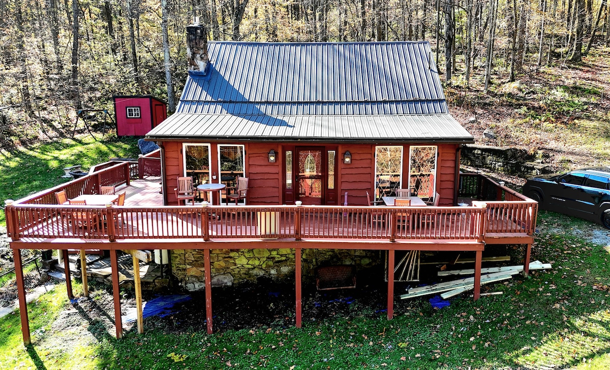 Recently renovated hand-built log cabin with amazing outdoor space. Very cozy and comfortable. A great family hangout space, indoors and out. One bedroom/loft/sofa bed. Close to Nemacolin Woodlands Resort, Frank Lloyd Wright's Falling Water, Ohiopyle, and many outdoor activities including rafting, hiking, biking, and kayaking. There's a smart TV for those rainy or cold days, as well as some games and books. A beautiful spot to simply relax, and a great base location for your next adventure.