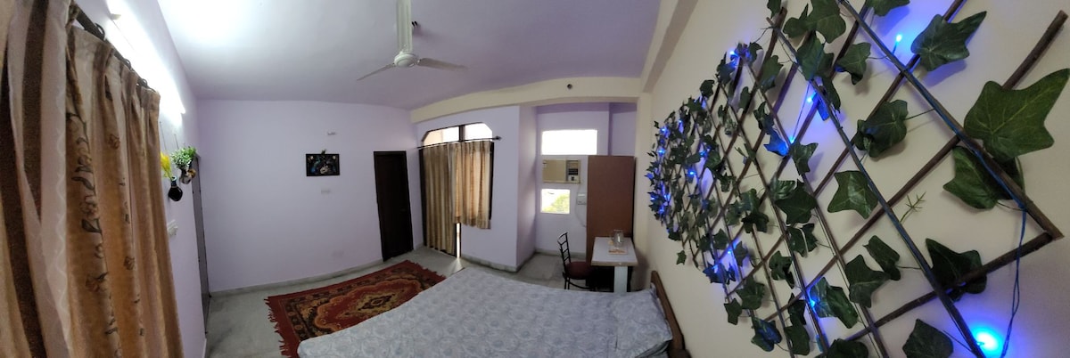 Alójate en un cómodo estudio con aire acondicionado en Reengus, ideal para parejas y viajeros que visiten Khatu Shyam Ji. Este estudio privado ofrece una cama acogedora, baño privado con agua caliente, TV y un entorno limpio y tranquilo. Situado cerca del templo Khatu Shyam Ji y de la estación de tren de Reengus, con fácil acceso y aparcamiento. Perfecto para una estancia económica y relajante con comodidad, practicidad y privacidad.