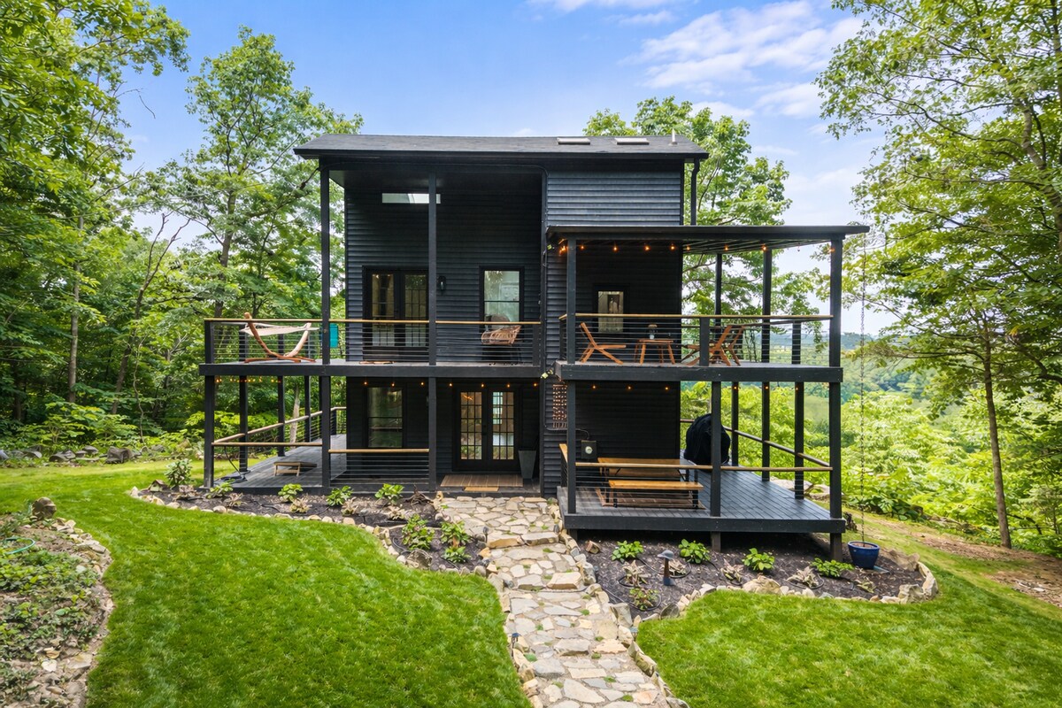 ¡La pequeña cabaña negra es todo lo que has estado soñando para tu acogedora escapada a la montaña! Disfruta de unas vistas panorámicas, acurrúcate junto a la chimenea o prepara s'mores en la hoguera. Prepara una comida gourmet en la pequeña pero bien equipada cocina. Tres comedores ofrecen opciones para la cena o una oficina remota, gracias al wifi. Prueba el senderismo, el yoga y el mercado de agricultores cercanos. ¡Somos un poco rústicos (sin televisión, aire acondicionado, microondas, lavandería o lavavajillas) y muy elegantes!