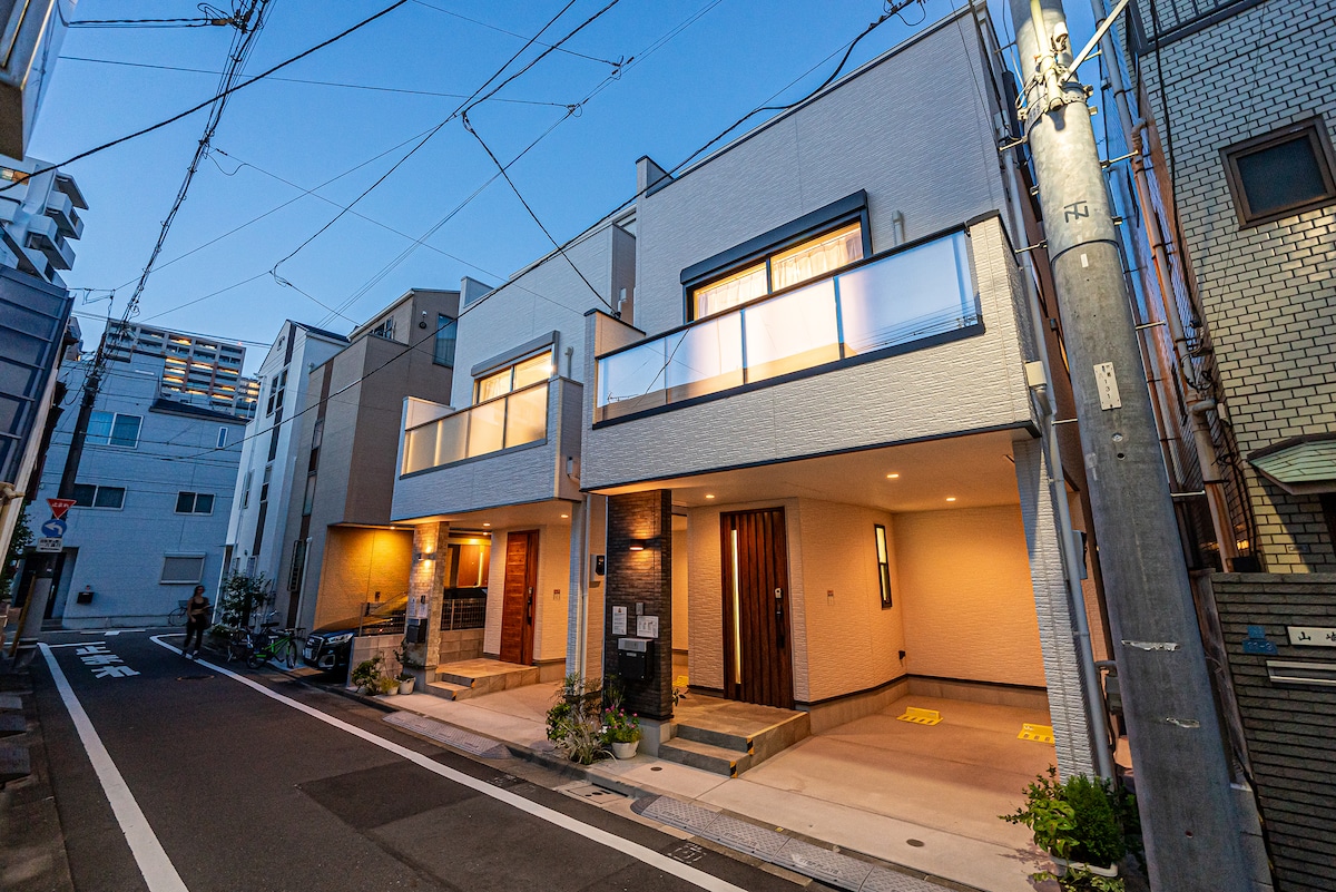 Casa de lujo moderna de 120 m2 de nueva construcción / A 7 minutos en tren de Shibuya / 4 dormitorios para 8 personas