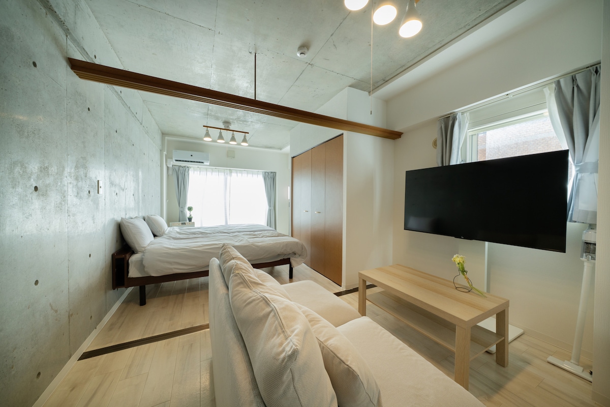 *Airbnbの地図にて案内される建物は当施設ではありません。 チェックイン前日に送られる案内に正しい住所、地図の案内がございますので必ずご確認をお願いいたします。 ※建物内にラゲッジロッカースペースをご用意しております。ラゲッジを固定するワイヤーロック1本1,000円でお貸しいたします。 最大2名まで快適に過ごせるお部屋。 建物の5階にある1Rのお部屋を貸切でご利用いただけます。 調理器具などもご用意しておりますので、 長期滞在にもおすすめです。 セルフチェックイン・アウトとなりますので、チェックイン前日にお部屋の鍵番号をお伝えいたします。 ※建物の他のお部屋には住居人が滞在しております。 (※同タイプですが、一部レイアウトが異なるお部屋もございます。お部屋の仕様はお変わりございませんのでご安心ください)