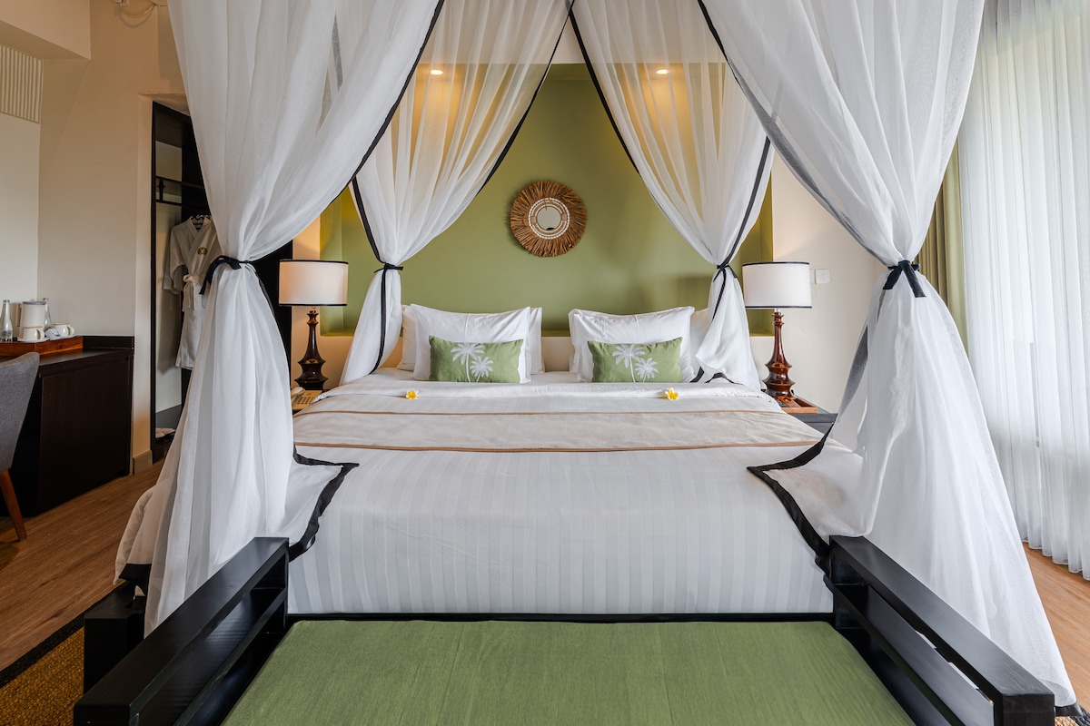 Ofrece un entorno relajante para descansar después de un ajetreado día explorando los lugares de interés de Ubud. Es una base acogedora con muebles de líneas limpias, un elegante baño en suite y una pared decorativa que muestra el legado creativo de Bali. Una terraza o balcón privado se integra a la perfección con el exterior, proporcionando espacio adicional para sentarse y relajarse.