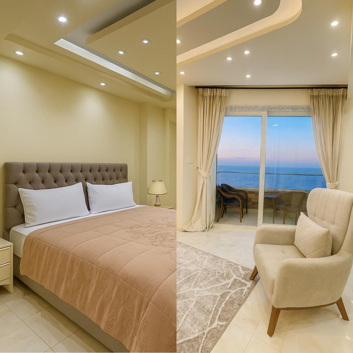 سكن عالي متميز جدااا تشطيب فندقي فاخر مكيفه بالكامل سخن وبارد رؤيه بانوراما علي البحر مباشرة تسع الي 6 أفراد أمن وحراسه ونضافه