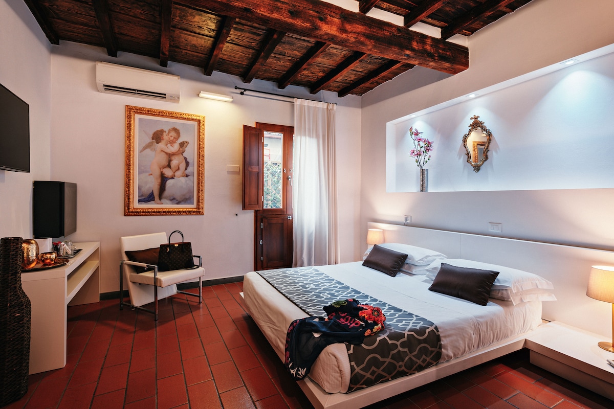 Las habitaciones son las más noble y prestigiosas del hotel L’Antico Pozzo. Aquí, en estas salas amplias, con techos altos, frescos, mobiliario que recuerda a los motivos artísticos y con la atención que es el sello distintivo de todo el hotel, Ud. podrá sentir el encanto de una estancia fascinante. Disponemos de 3 habitaciones de este tipo, diferentes entre sí como se muestra en la foto, se pueden asignar según disponibilidad.