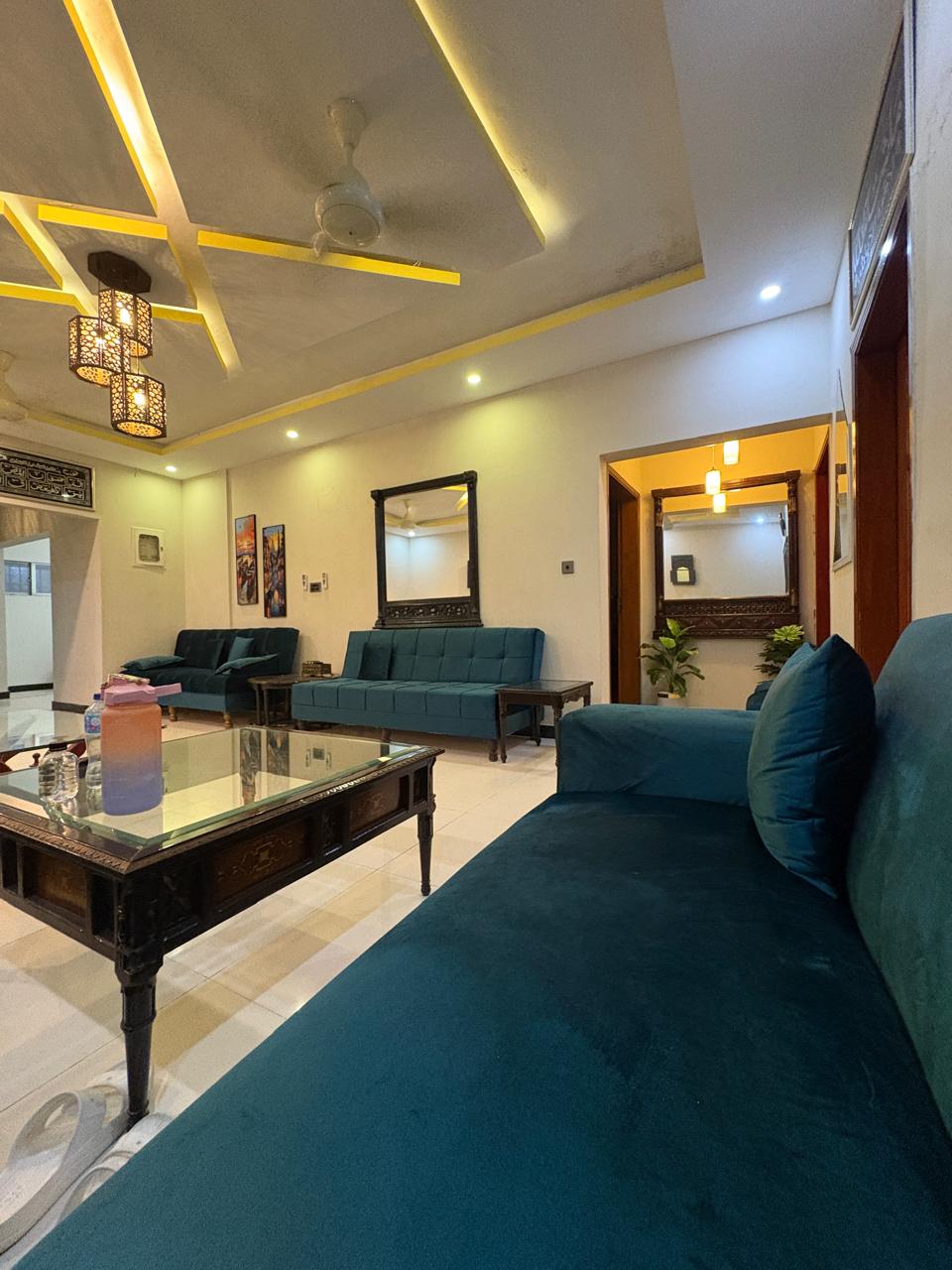 Bienvenido a nuestro apartamento de 3 dormitorios bien amueblado, cada uno con baño adjunto y aire acondicionado. El apartamento también cuenta con una acogedora sala de estar, salón y cocina totalmente equipada, por lo que es perfecto para familias o grupos. Con un amplio espacio, puede alojar cómodamente hasta 5 huéspedes Situado en el corazón de DHA Fase 6, Nishat Commercial, el apartamento está a solo 1,5 a 2 kilómetros de Sea View, lo que proporciona un fácil acceso a la playa. Nos enorgullecemos de ofrecer la mejor hospitalidad a nuestros huéspedes