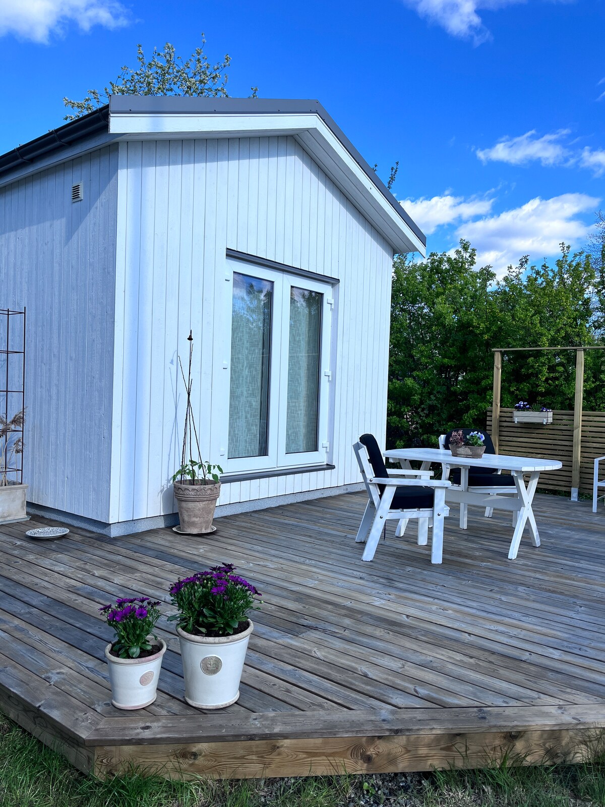 Disfruta de una estancia en nuestra pequeña casa de campo, a 14 minutos de Arlanda y a 20 minutos del centro de Estocolmo en tren de cercanías. Baño con ducha, cocina, sofá convertible en cama doble. Uso de la cama alta, subirse a ella es bajo tu propia responsabilidad. Terraza con jardín privado. Coordenadas exactas: 59.459744, 17.919776