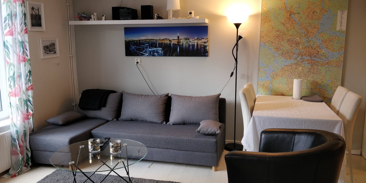 Bienvenido a nuestro apartamento espacioso y cómodo en la pintoresca Sollentuna. Perfecto para familias y grupos de hasta cuatro personas. Disfruta de una decoración moderna, una cocina totalmente equipada y un acogedor salón. - Capacidad: 4 personas (dos dormitorios con cómodas camas individuales) - Servicios: Aparcamiento gratuito (incluso para un coche grande), wifi, TV, buen nivel de equipamiento - Ubicación: Zona tranquila cerca de una reserva natural, a 20 minutos del centro de Estocolmo en transporte público Explora Estocolmo con una base cómoda.