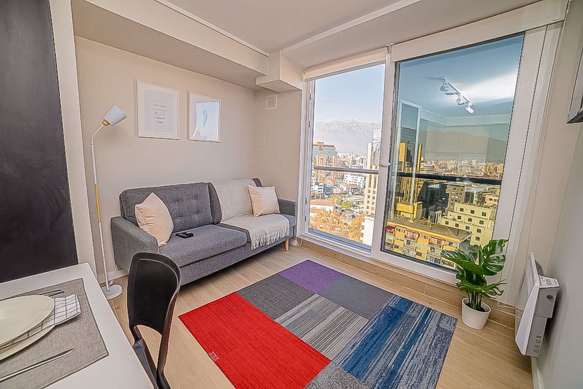 Acogedor y moderno estudio en Las Condes, a solo 3 minutos caminando del Metro Hernando de Magallanes. Ubicado en un barrio seguro y tranquilo, rodeado de parques, restaurantes, cafés y centros comerciales. El espacio cuenta con A/C, cocina full equipada, Smart TV, WIFI, zona de descanso confortable y todas las comodidades necesarias para una estadía placentera. Ideal tanto para turistas que desean explorar Santiago como para viajeros de negocios que buscan comodidad y excelente conectividad.