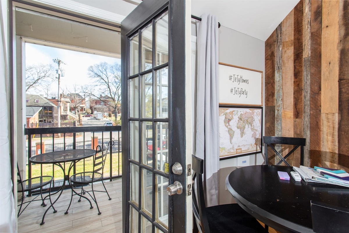 ¡Anterior casa del famoso chef y visitada por muchas celebridades! * Llegada sencilla * Parque gratuito *Terraza * Temática de Taylor Swift y Dolly Parton * Silla columpio y pared para Instagram * 1 cama tamaño king, 2 camas tamaño queen y un sofá cama tamaño queen. * Balcón y ubicado en una gran comunidad * Totalmente surtido: incluye avena y café gratis, cápsulas de café, toallas, artículos de aseo y mucho más. ¡Camina hasta Broadway! ¡Camina por todas partes! Music City Center a 4 manzanas. Bridgestone Arena: a 6 manzanas. Ryman, Nissan-8 manzanas El baño está en la habitación