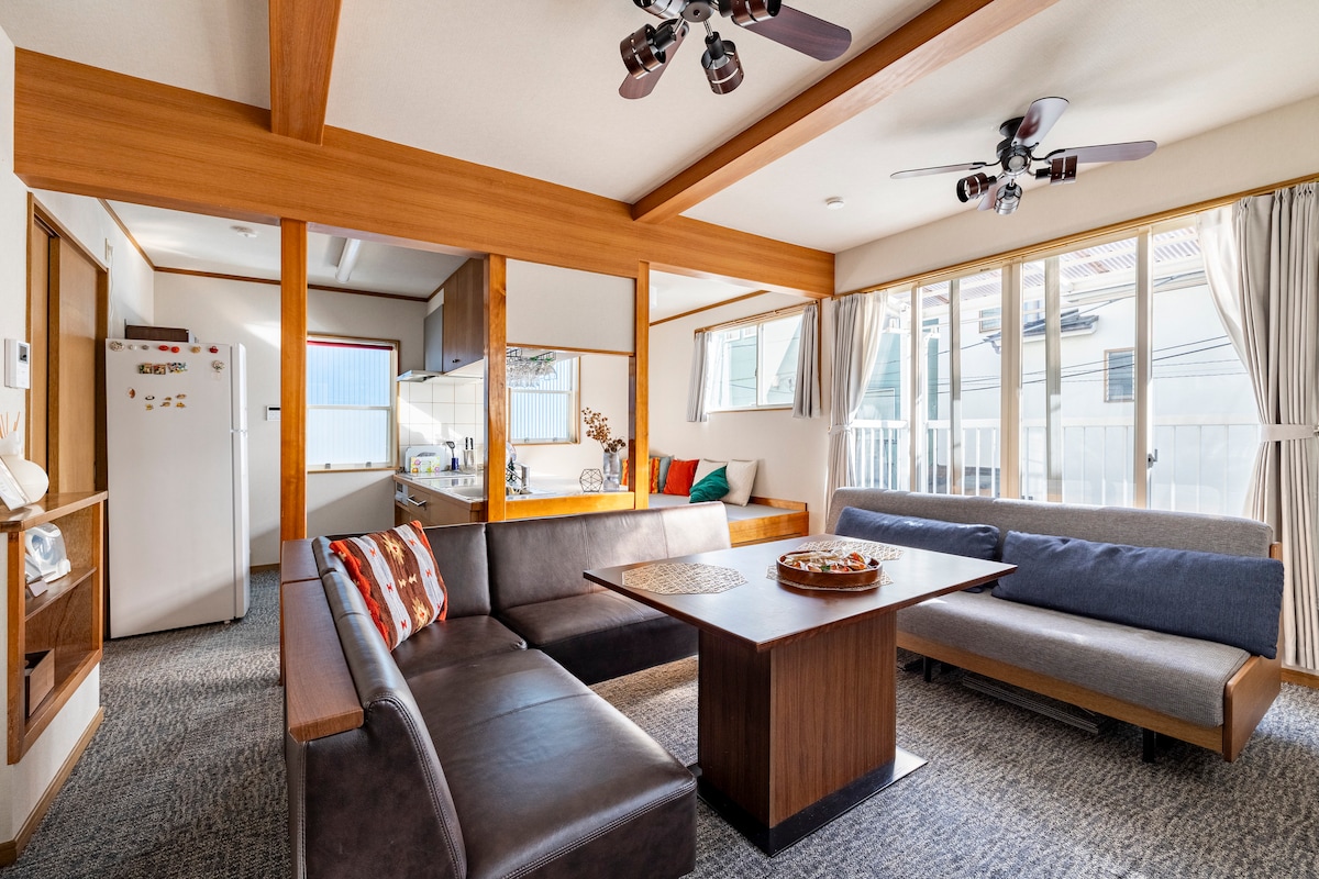 ¡Nueva apertura en mayo de 2025! Hachimanhime es un alojamiento en la segunda planta de un pequeño edificio en un barrio residencial de Soka, prefectura de Saitama, con una larga historia.Es un alojamiento espacioso con cocina independiente, televisor grande y salón con sofá de 41 m².Tendrás toda la casa para ti en un espacio privado. 🍳 Acerca de las instalaciones Hay 2 camas dobles en el dormitorio privado y 1 cama doble en la sala de estar, donde puedes conversar con tus amigos.También hay un sofá cama, por lo que puedes alojarte cómodamente con una familia o grupo de amigos de 4-6 personas. Cuenta con todo lo necesario para la vida diaria, incluida una lavadora. 🛒 Sobre los alrededores Hay una tienda de conveniencia abierta las 24 horas muy cerca.También hay grandes supermercados a poca distancia a pie, lo que lo convierte en un lugar muy cómodo y fácil para vivir. 🚃Acceso La estación más cercana es la estación de Nitta, en la línea Tobu Skytree.Está a unos 30 minutos directamente de Ueno, y también puedes ir directamente a Akihabara y Ginza, por lo que es conveniente para hacer turismo y negocios. Se tarda 13 minutos en llegar a la estación más cercana, pero hay un supermercado y una panadería de la fábrica de panadería en el camino, lo cual es conveniente.