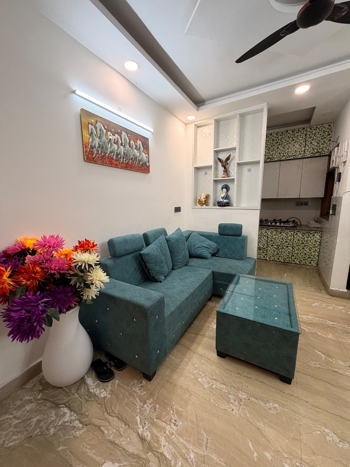 Bienvenido a nuestro acogedor y elegante apartamento de Airbnb ubicado en el vibrante barrio de Rohini, Delhi. Este apartamento elegantemente amueblado ofrece un refugio perfecto para personas que viajan solas, parejas o familias pequeñas que buscan comodidad y conveniencia durante su estancia en la bulliciosa capital. Tendrás acceso a dos estaciones de metro, cerca de múltiples servicios y atracciones. Explora los mercados, restaurantes y cafeterías cercanos para experimentar la vibrante cultura local.