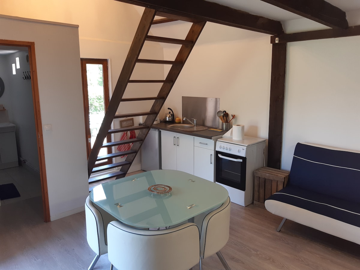 Encantadora casa de una planta con chimenea de leña orientada al sur, jardín privado y cerrado y terraza. Este bonito lugar, ubicado en una dependencia de la casa de los propietarios, se encuentra en el borde de una calle tranquila con un gran parque con árboles, naturaleza y prados como vecinos. Este lugar, no muy lejos de la Bahía de Somme, el mar y el bosque, será ideal para un fin de semana, unas vacaciones o un descanso del teletrabajo para parejas o familias.