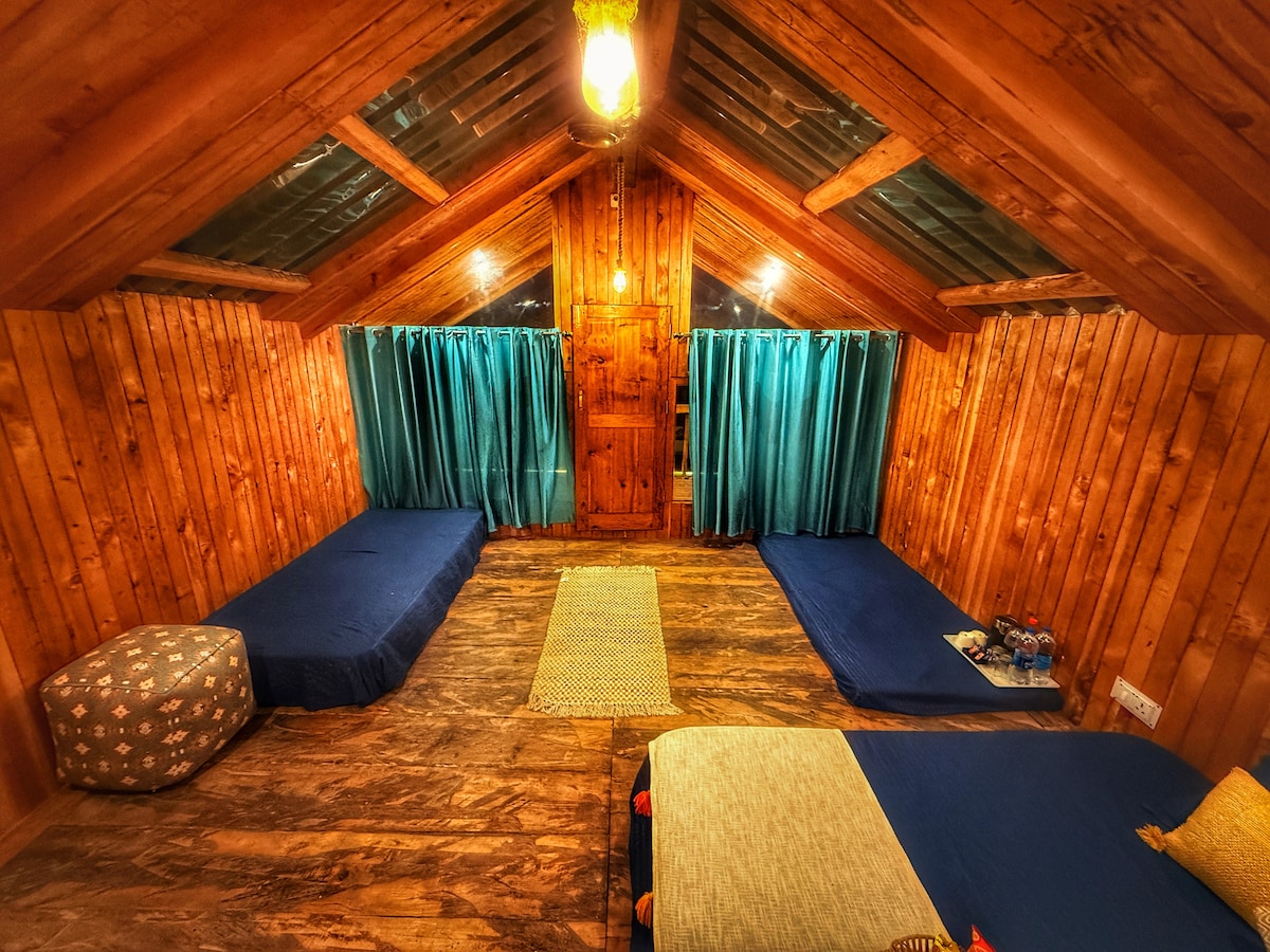 Khwaab the Duplexes es la respuesta a tu pregunta sobre cómo es la zona detrás de Jibhi. Cuatro acogedoras habitaciones dúplex de madera con buhardilla, ideales para familias, amigos y grupos. Con comedor y cocina propios y acceso al lago a 50 m. Este es el importe total para las cuatro habitaciones; también se pueden reservar habitaciones individuales. También organizamos experiencias originales por senderos. Estaremos encantados de hospedaros:)