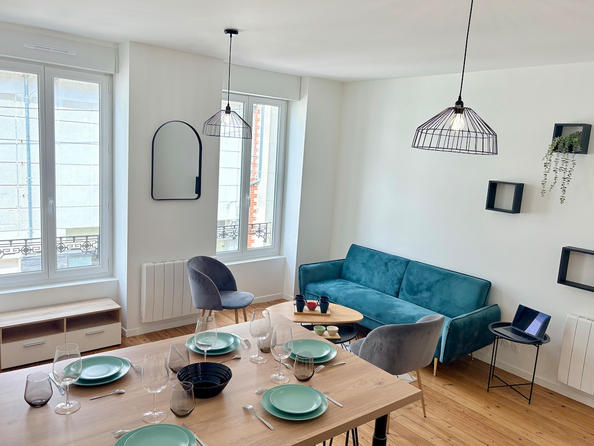 Este alojamiento perfectamente situado ofrece un fácil acceso a todos los sitios y comodidades (supermercado cercano, calle comercial, escuelas, banco, estación de tren, castillo, piscina, mediateca, teatro de cristal, restaurantes, alquiler de bicicletas, etc.) Para su viaje de negocios, para un fin de semana de paso o durante unas prácticas... ¡se sentirá como en casa! La habitación pequeña es en formato cabina. Esta encantadora casita del centro de la ciudad está totalmente a su disposición y bien equipada.