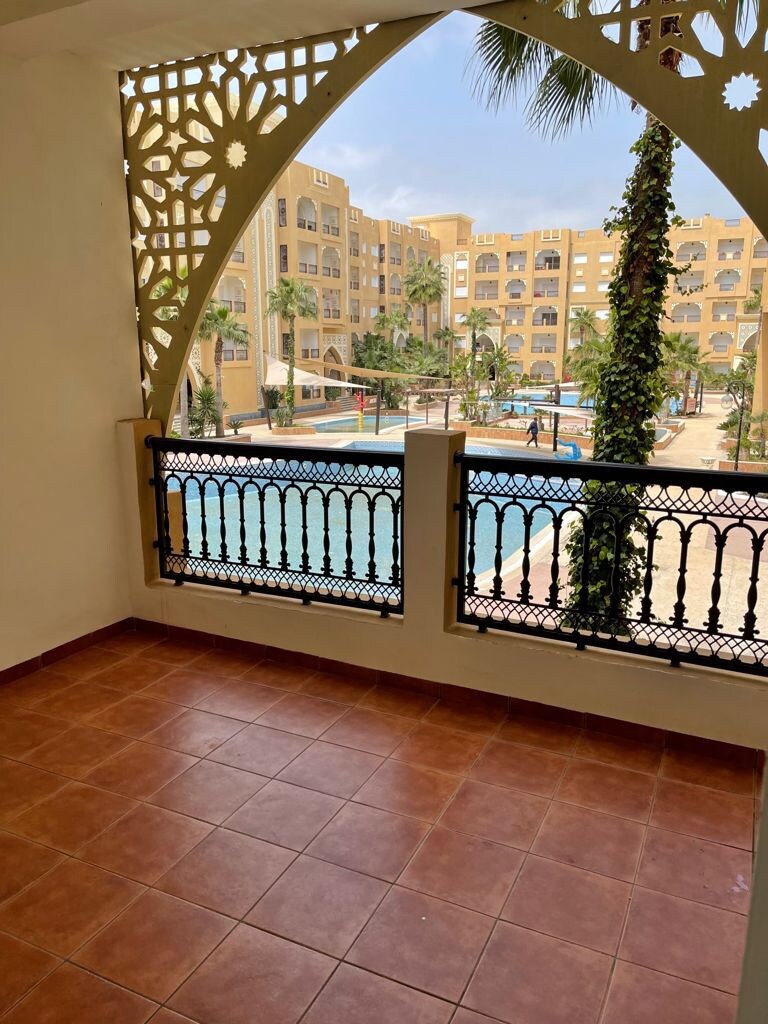 Apartamento exclusivo en residencia de lujo en Susa, Túnez A 10 minutos del centro de la ciudad, ofrece comodidad y relajación en un prestigioso complejo con restaurantes, bares, bazares, piscinas, zonas de relajación y un spa con centro de masajes. Seguridad 24/7 y ascensor para mayor comodidad Tiene un dormitorio doble con baño privado y balcón, un dormitorio doble, un segundo baño, un salón-cocina de espacio abierto y un balcón con vistas a la piscina. Acceso directo a una hermosa playa privada para una estancia inolvidable.