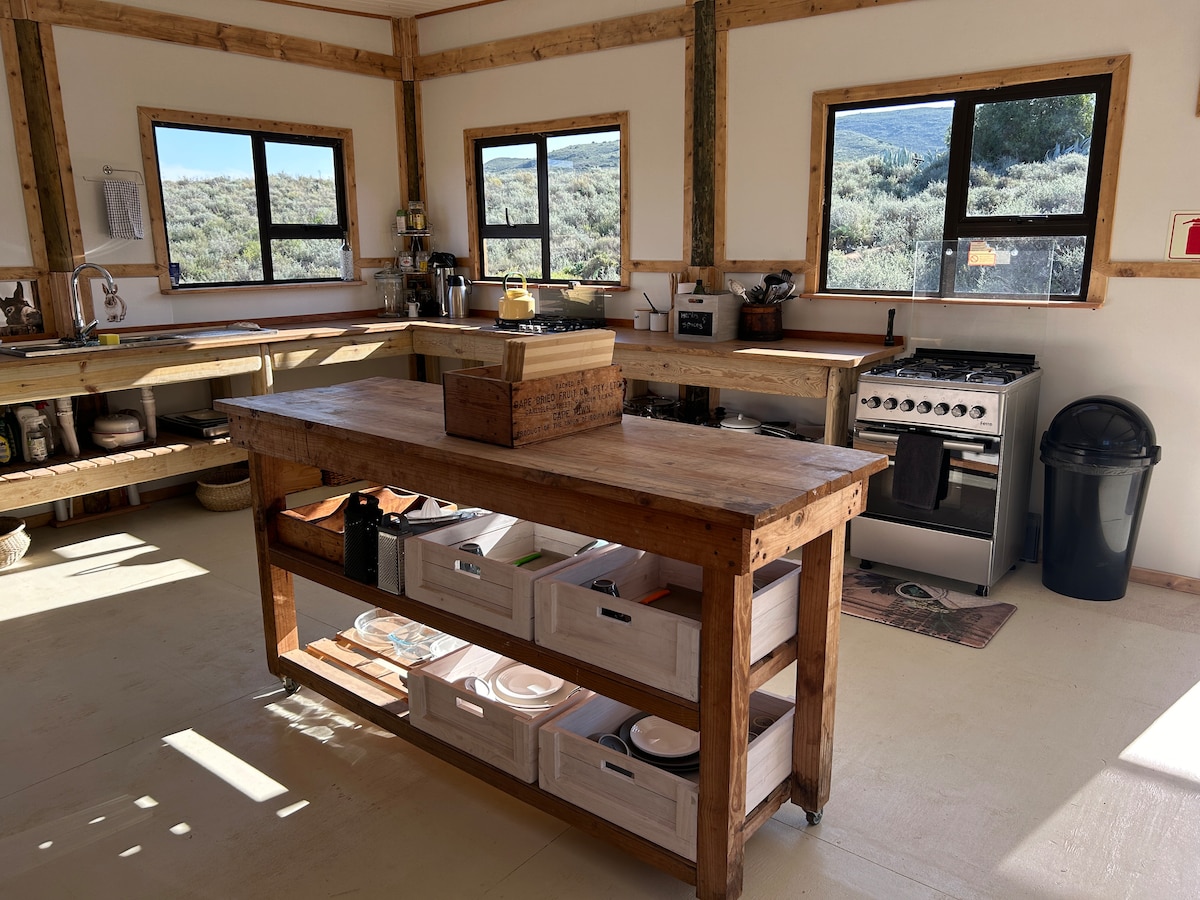 Te encantará esta escapada única y romántica. Glamping en su máxima expresión. Todo lo que necesitas para prepararte la comida. La tienda tiene su propia entrada y tu propia bañera de hidromasaje privada de leña para esas noches frías o piscina de cócteles para los días calurosos. Tenemos una pantalla de cine al pie de tu cama, un proyector para ver algunos clásicos, buena fibra para transmitir tus aplicaciones favoritas, microondas para palomitas de maíz, mantas eléctricas y un calentador de gas, una barbacoa y una olla potjie, comedor exterior y una ducha caliente.
