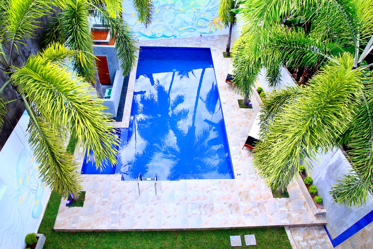 Mi lugar está cerca de la playa, restaurantes y la playa principal, famosa por las tortugas marinas y el arrecife de coral. Te va a encantar mi lugar debido a la ubicación y a las vistas. Mi alojamiento es bueno para parejas, familias (con hijos) y grupos grandes. Baja gratuita en el puerto aéreo para reservas de más de 20 días La propiedad es una villa moderna con 3 habitaciones, todas las habitaciones están diseñadas con aire acondicionado, baños con ventilador, TV digital con jardín pequeño, agua caliente las 24 horas en todos los lugares por energía solar, cama gratuita, té. Wifi gratuito en toda la propiedad.