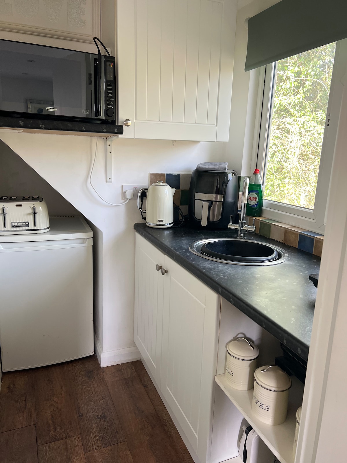 Espacio habitable grande, lujoso y sereno con aparcamiento gratuito fuera de la vía pública. La conversión del loft es extensa y cubre toda la longitud del bungalow ampliado y cuenta con entrada privada y baño. El dormitorio principal tiene una cama tamaño súper king, otro sofá cama y una sala de estar con TV. La segunda habitación tiene una bañera, cocina americana y comedor. El sofá cama aquí ofrece más flexibilidad para dormir. La cocina pequeña tiene tetera/cafetera, tostadora, microondas y mininevera-congelador, pero no hay utensilios para cocinar.