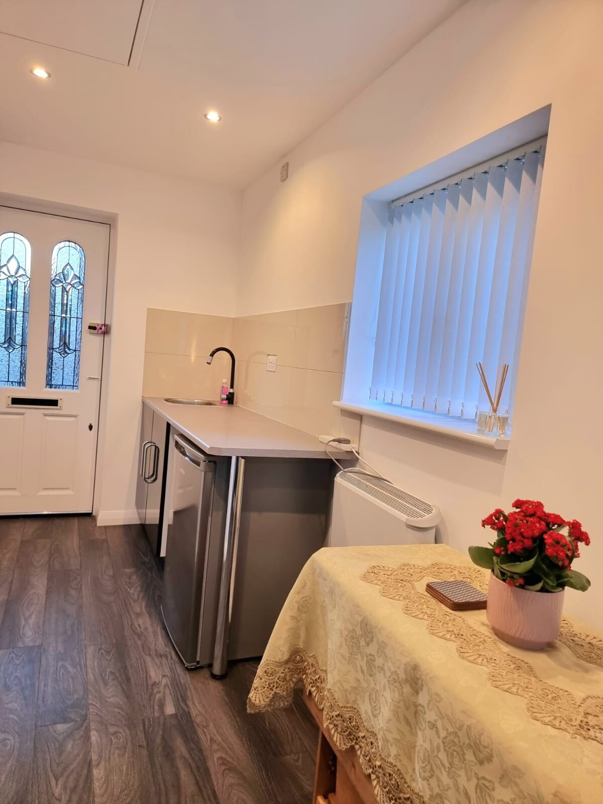 En este alojamiento se respira tranquilidad: ¡relájate con toda la familia! El alojamiento tiene su propia encimera (sin placa), baño privado, entrada privada, nevera, microondas, hervidor de agua, tostadora, TV y todo lo necesario para una estancia cómoda. El alojamiento está cerca de tiendas y tiene fácil acceso al transporte público al centro de Londres y Heathrow. Las tiendas de comestibles Nisa Local y khushi Local están a 0,3 millas, la calle principal de Ashford, que tiene muchos restaurantes y varias tiendas, y el gimnasio están a 0,5 millas a pie, es decir, a 10-12 minutos.