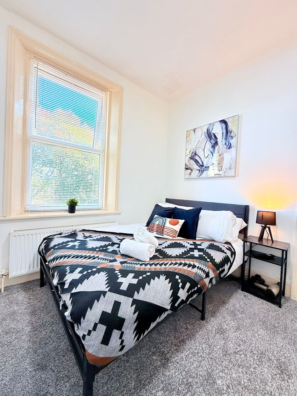Ubicado en un hermoso edificio georgiano, este elegante apartamento en el centro de la ciudad para 6 personas cuenta con su propia entrada privada. Está a menos de 5 minutos a pie de la estación central de Newcastle y del local de música NX Newcastle. Tienes acceso a los mejores restaurantes, locales nocturnos y a poca distancia a pie de ambas universidades. Recién reformada, la propiedad está totalmente equipada y ofrece todo lo necesario para estancias largas y cortas. *Estrictamente no se permiten fiestas: edificio residencial tranquilo.