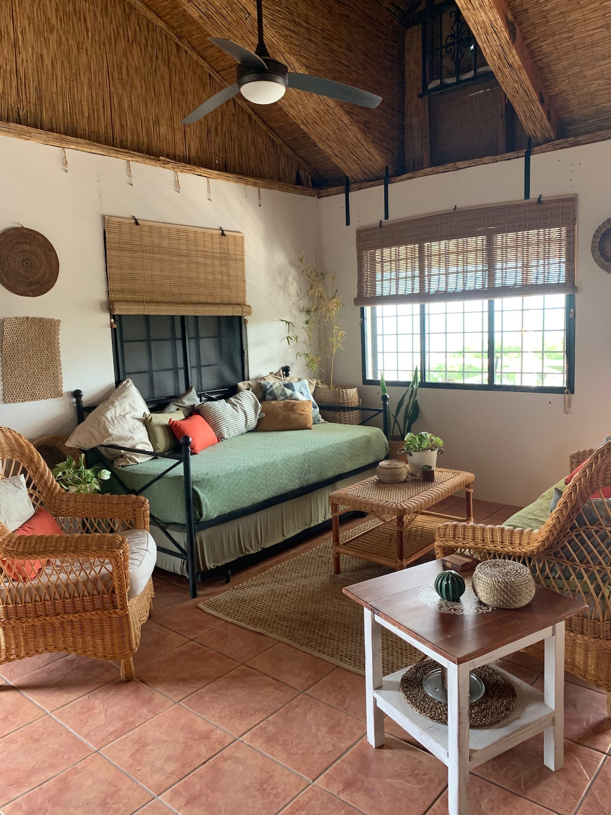 Piquitololo es un pequeño apartamento tipo estudio ubicado en nuestra propiedad llena de árboles en una zona residencial de la isla. Cuenta con un porche privado, una terraza privada en la azotea, una pequeña cocina completa, aire acondicionado, ventiladores, wifi, TV inteligente con Netflix y Disney+, una cama tamaño queen, agua potable ilimitada y ¡BICICLETAS! Barbacoa y mesa de picnic ubicadas en el patio compartido. Vivimos en el lugar con nuestras dos hijas, dos perros y dos gatos.