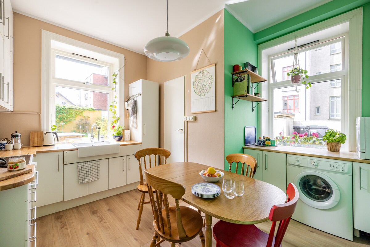 79 metros cuadrados (¡850 pies cuadrados!), 2 dormitorios dobles, internet de alta velocidad. ¡Balcón! A 10 minutos a pie de la estación de tren/ Ópera /Museo Munch/centro de la ciudad. Un apartamento cuidadosamente decorado y super relajante en medio de Grønland (El Williamsburg / Dalston / Neuköln de Oslo), justo en el Jardín Botánico. Ubicado en varias revistas de interiores, este apartamento de artistas recientemente renovado es el hogar perfecto para tu aventura en Oslo. Calma y tranquilidad, techos de 11 pies... es un lugar que debes experimentar...