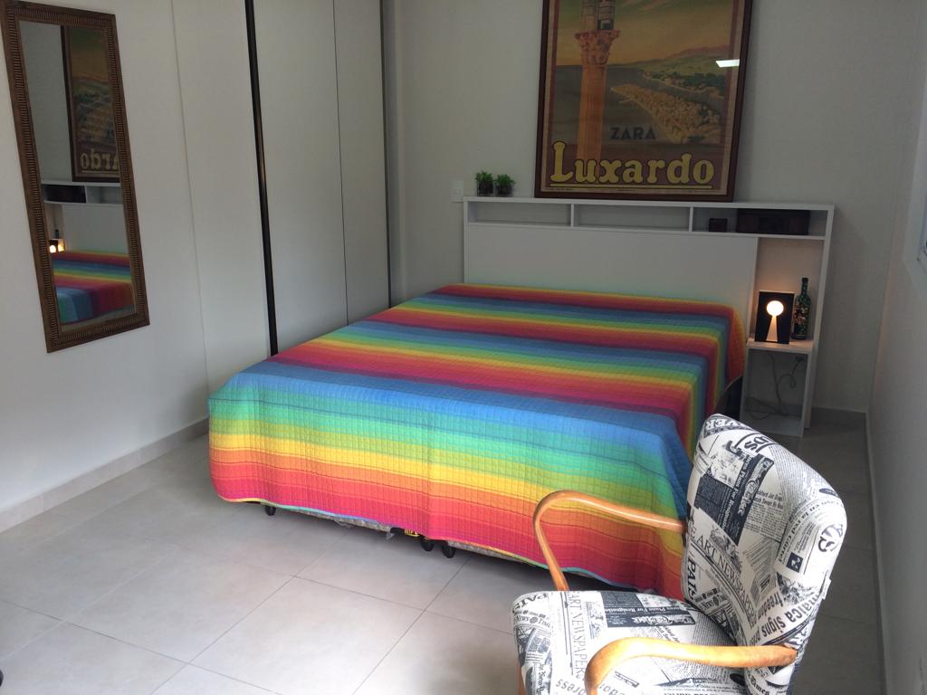 Seguridad, comodidad y GRAN ubicación. El espacio tiene capacidad para 3 personas y la ubicación es perfecta. Cerca de Av Centenário, está cerca de mercados (BISTEK, ANGELONI y GIASSI) y restaurantes. El lugar cuenta con una suite con aire acondicionado y un armario para estancias cortas. En la sala hay un sofá cama y un televisor INTELIGENTE, con wifi incluido. La cocina está completa (microondas, cocina de inducción, sartenes, cubiertos) Ideal para una pareja, familias pequeñas o viajes de trabajo.