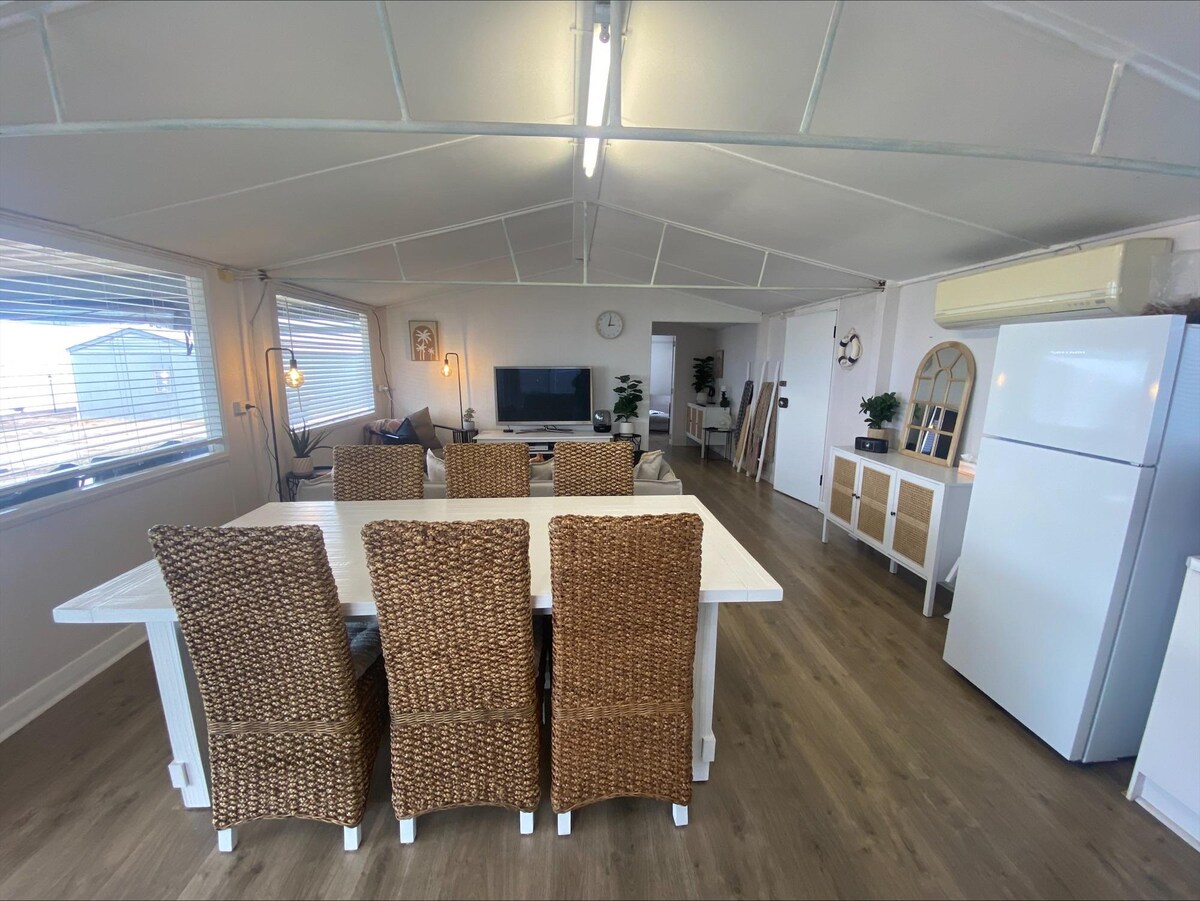 A solo 3 minutos de la playa y situado en nuestra tranquila granja familiar, The Bunny Shack es un acogedor refugio de 2 dormitorios en la península de Yorke. Totalmente renovado, es el lugar perfecto para escapar de la rutina. Despiértate con los sonidos del campo, disfruta del aire fresco y luego dirígete a la costa para nadar por la mañana y pasear por la playa. Sin tráfico ni ruido, solo espacios abiertos, te resultará fácil reducir la velocidad y relajarte de verdad.