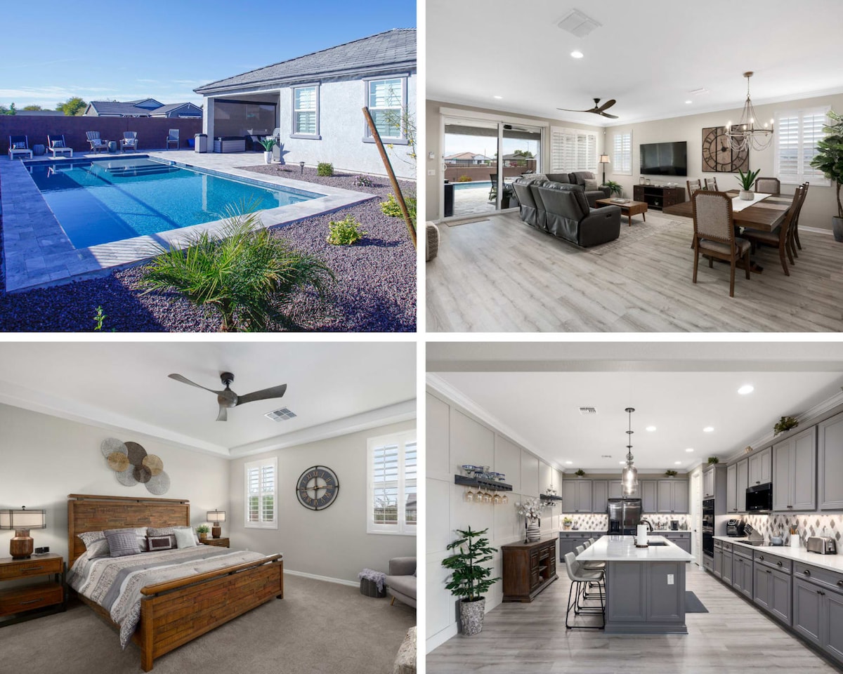 Casa entretenida y familiar; gran patio cubierto con muchos asientos, mesa de fuego y parrilla Treager; con vistas a la profunda piscina climatizada de 10 pies de octubre a mayo (incluida). Increíble cocina de chef totalmente equipada: hornos dobles, placa de cocción de gas de 6 quemadores. Todos los dormitorios tienen cómodos colchones Tempur y televisores inteligentes. Una ubicación perfecta para tu escapada a Arizona. A solo 0,8 millas del State Farm Stadium, Desert Diamond, Westgate, Tanger con toneladas de restaurantes locales y aventuras, ¡evita el tráfico y camina a tu evento!